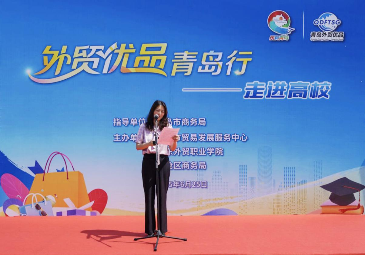 为深入贯彻党中央关于构建“国内国际双循环相互促进新发展格局”的战略部署,助推优质外贸产品开拓国内市场,2025年6月25日,由青岛市商务局指导,青岛市贸易发展服务中心、山东外贸职业学院、李沧区商务局联合主办的“外贸优品青岛行——走进高校”活动在山东外贸职业学院成功举办。