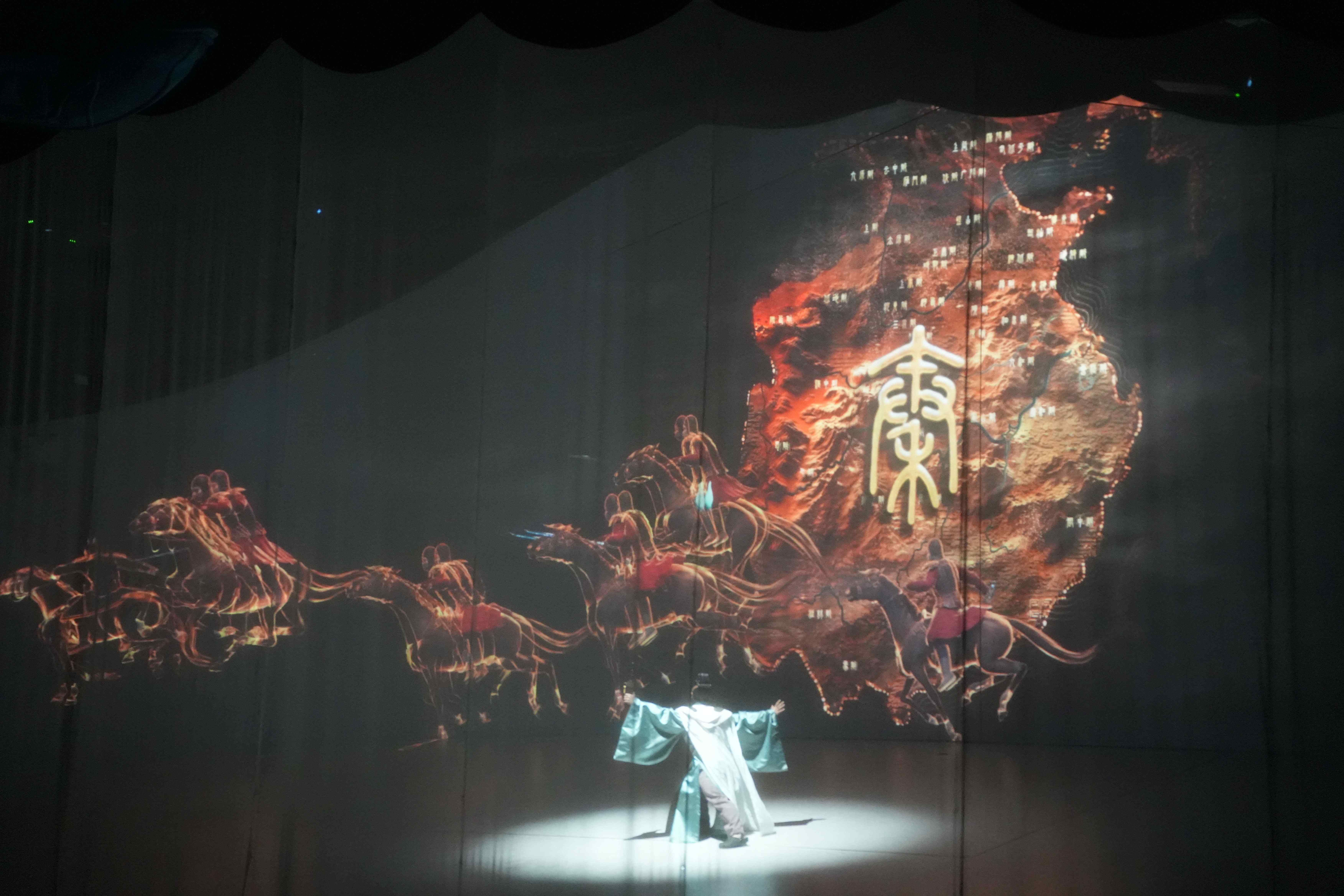 演出中,"乘风破浪,到眼睛望不见的地方"、"凡人迹所至,都有秦人生生不息"等台词,既是对历史的致敬,也是对航海精神的当代诠释。虚拟演员与真人同台的创新形式,打破了传统演出的时空界限,为观众带来耳目一新的视听盛宴。