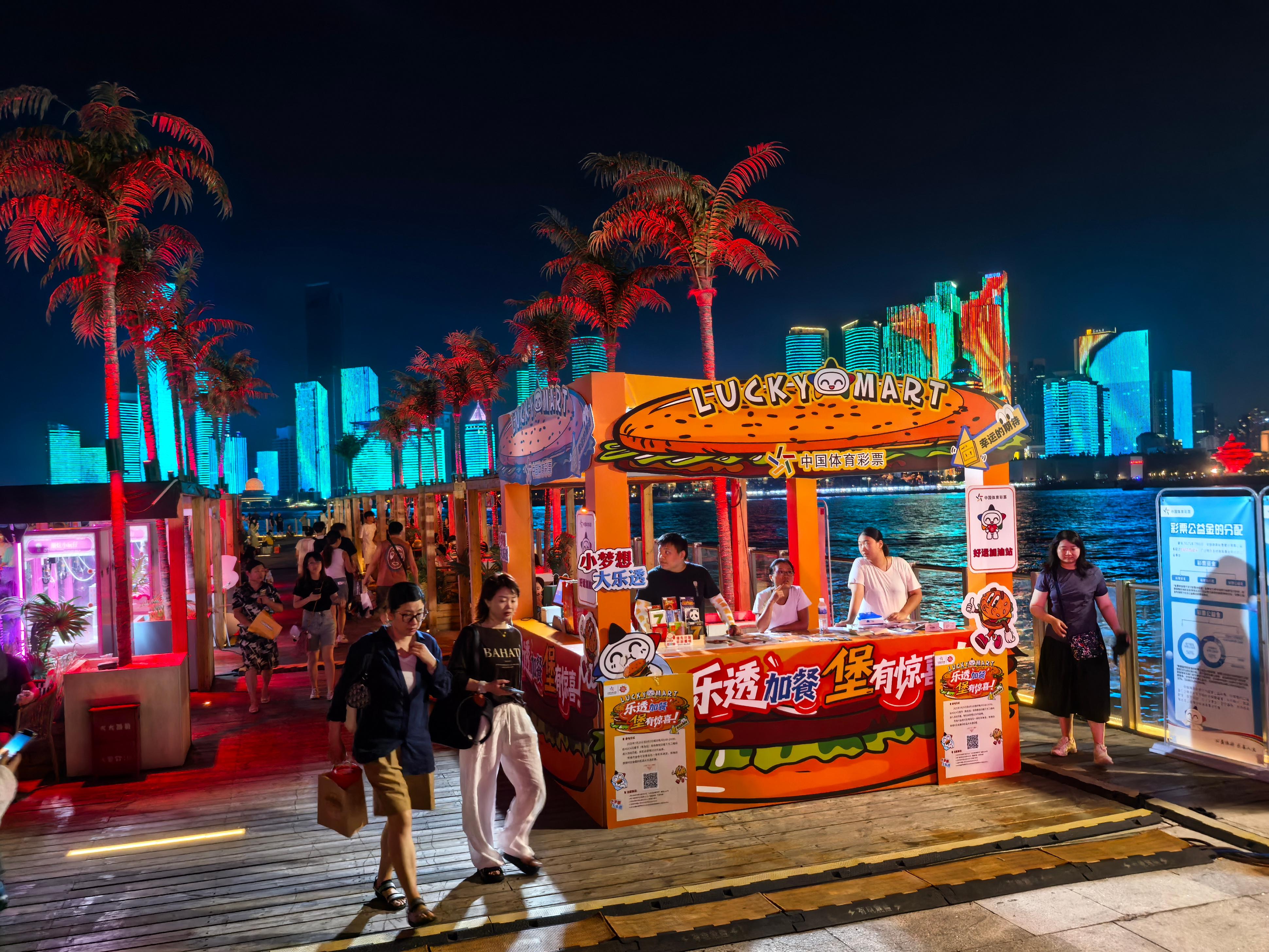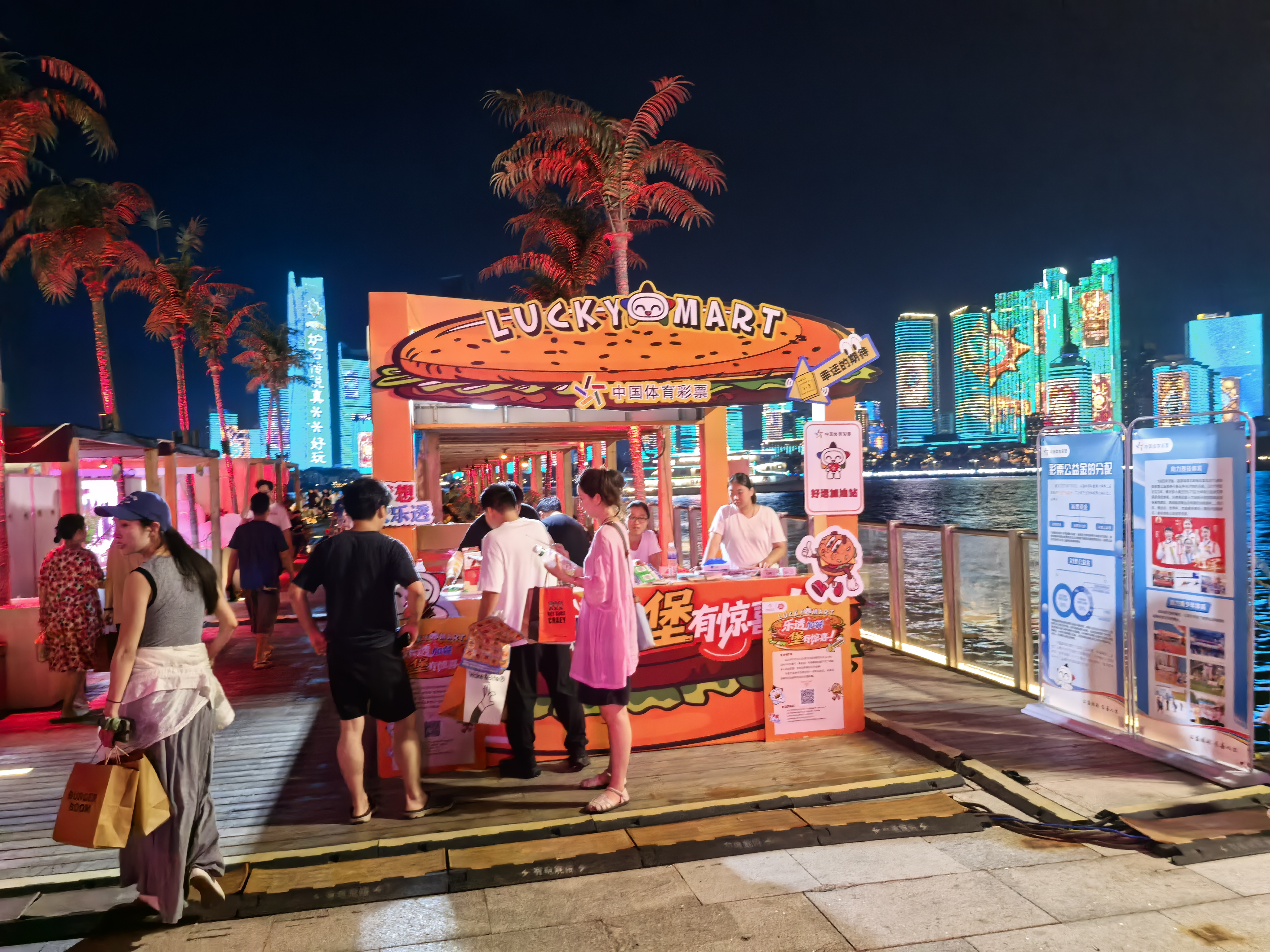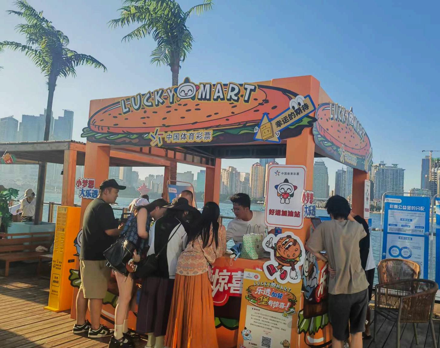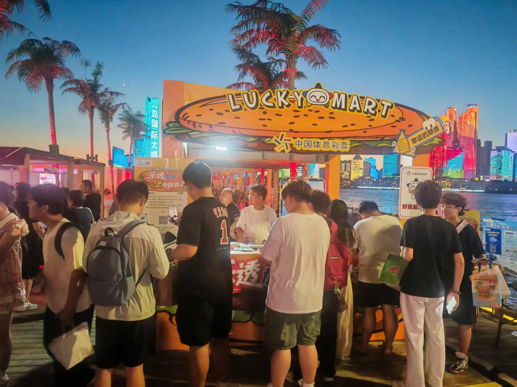 在这场人气爆棚的美食嘉年华中,体育彩票设立的“LUCKY MART”幸运小站格外引人注目。游客们不仅能免费领取10元大乐透体验券,在品味美食之余增添一份幸运期待;还能在欣赏浮山湾美景的同时,即兴刮上几张顶呱刮即开彩票,体验即开即中的乐趣。