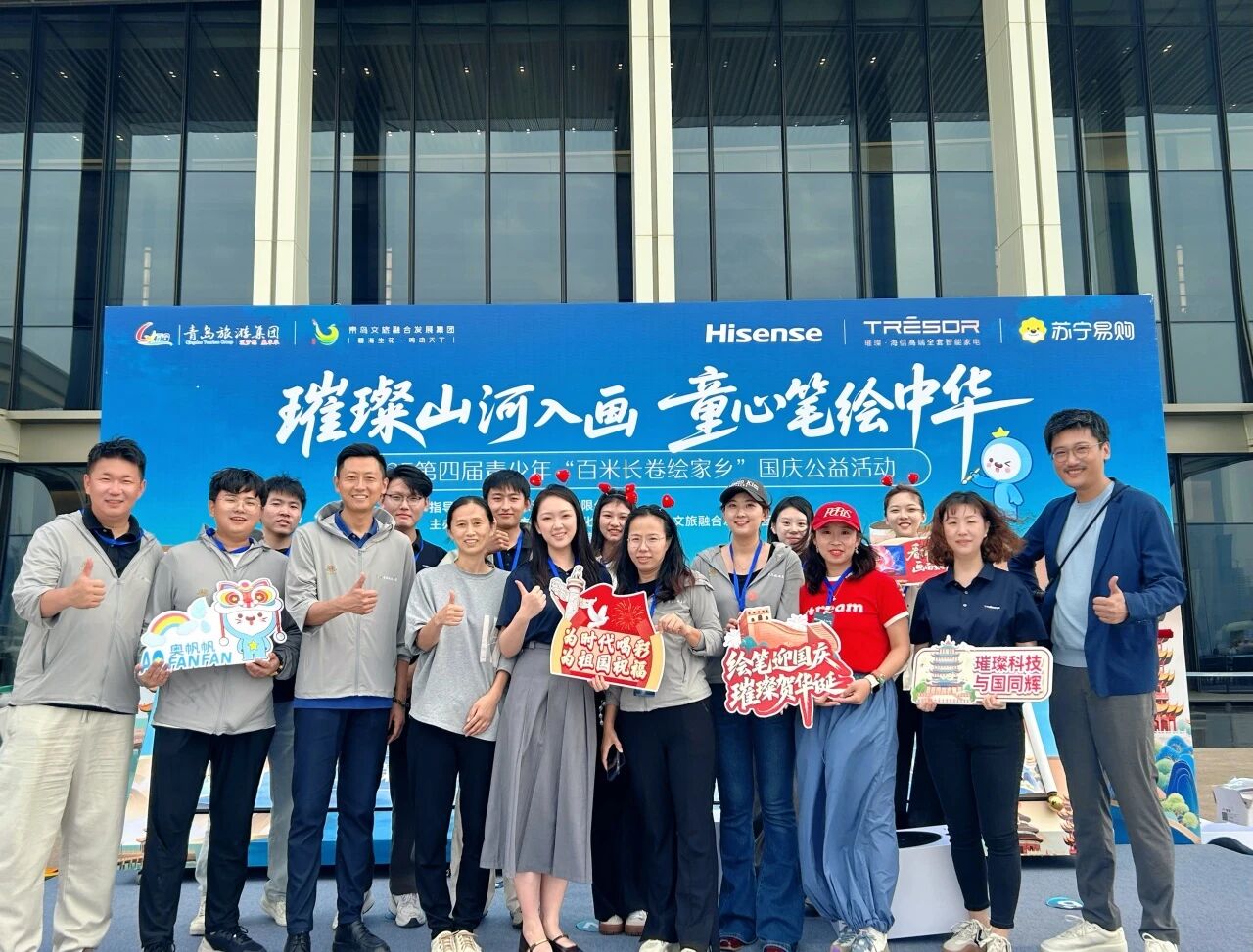 在金秋送爽、举国同庆的日子里,由青岛旅游集团指导,青岛市市南区文化和旅游局、青岛文旅融合发展集团、海信中国区营销总部主办,苏宁易购、远行少年研学协办的第四届青少年“百米长卷绘家乡”国庆公益活动在青岛奥帆中心国际会议中心前南广场圆满落下帷幕。150组家庭齐聚一堂,以手中画笔共绘山河壮丽,以童心创意礼赞祖国华诞,为这座海滨城市增添了一抹动人的文化亮色。