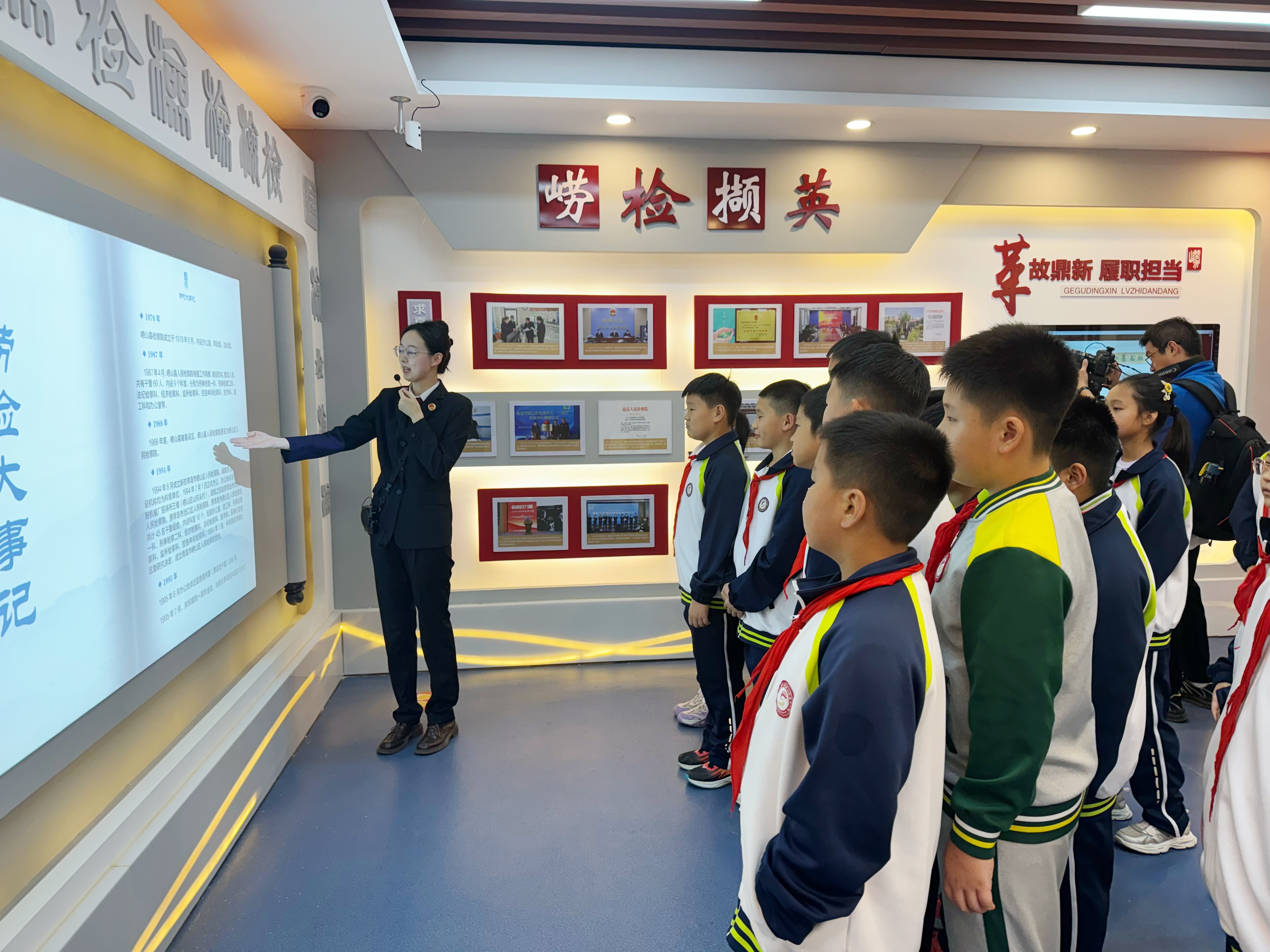 学生们参观崂山区检察院崂检文化展厅,学习了解中国检察史。