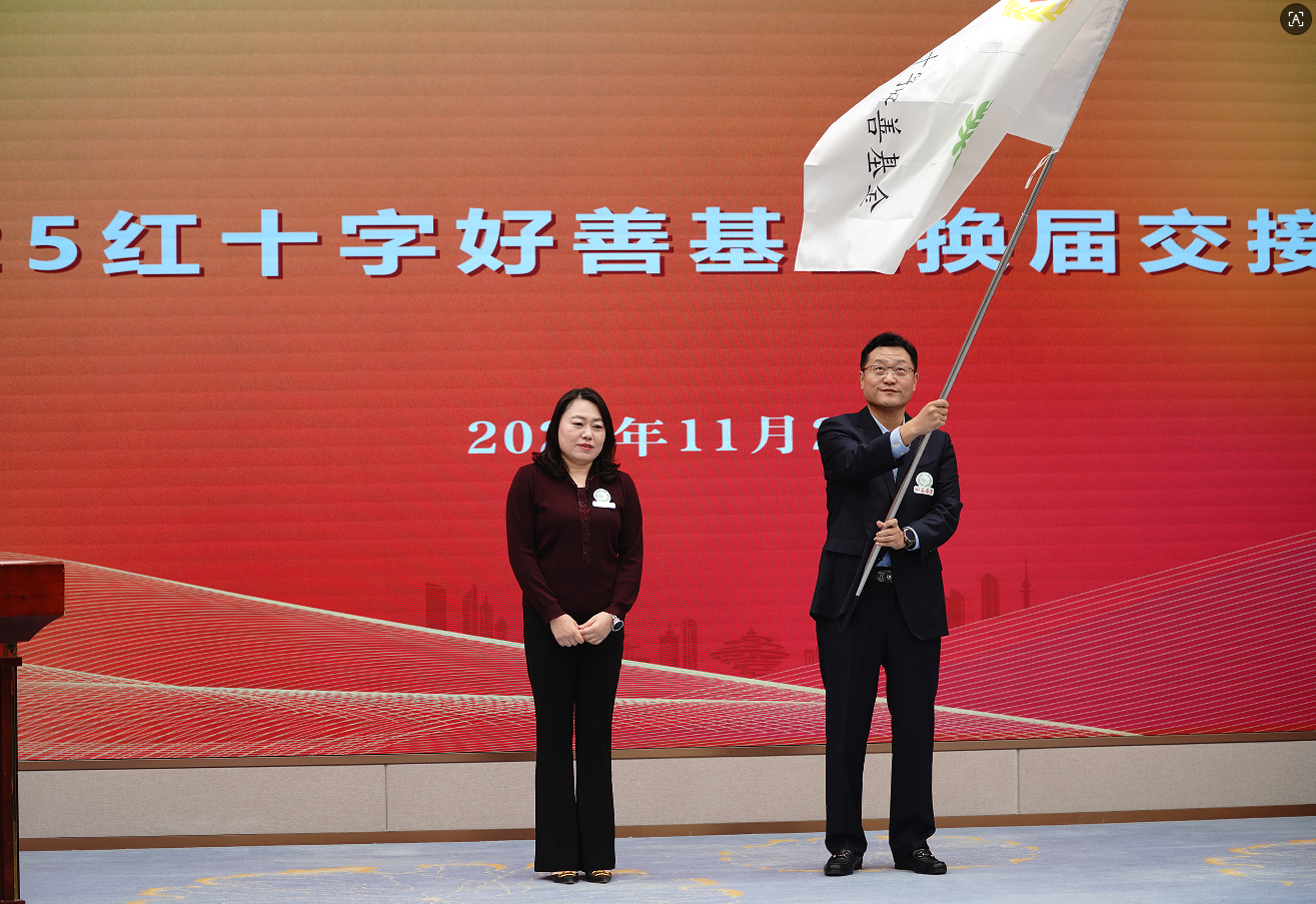 在全场嘉宾的共同见证下,第三届执行理事长陈珊与第四届执行理事长王正君完成公益旗帜交接,标志着基金开启组织架构优化的新阶段。接过接力棒后,王正君先生作为新任执行理事长登台致辞,他坚定表示:“好善基金的初心从未改变,未来我们将始终以‘好善’精神为指引,传承帮扶使命,更要贴合新时代公益需求,推动帮扶模式迭代升级。”王正君明确表示,未来基金将“一老一小”,两手同抓,紧紧围绕红十字会的核心使命与基金的公益初心,以更加开放的心态,更加务实的行动,努力将好善基金打造成更具影响力、公信力和专业性的公益平台。致辞结束后,王正君现场为好善基金新任副理事长张福亮授牌,新班子的亮相为公益事业注入了新鲜活力。