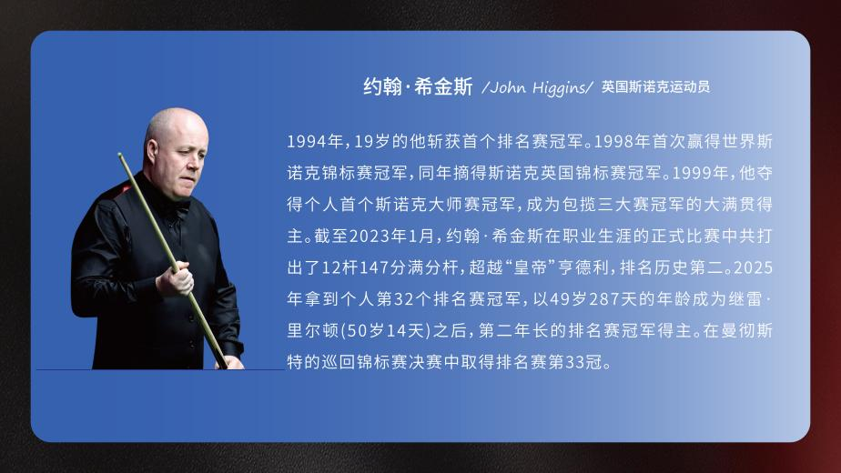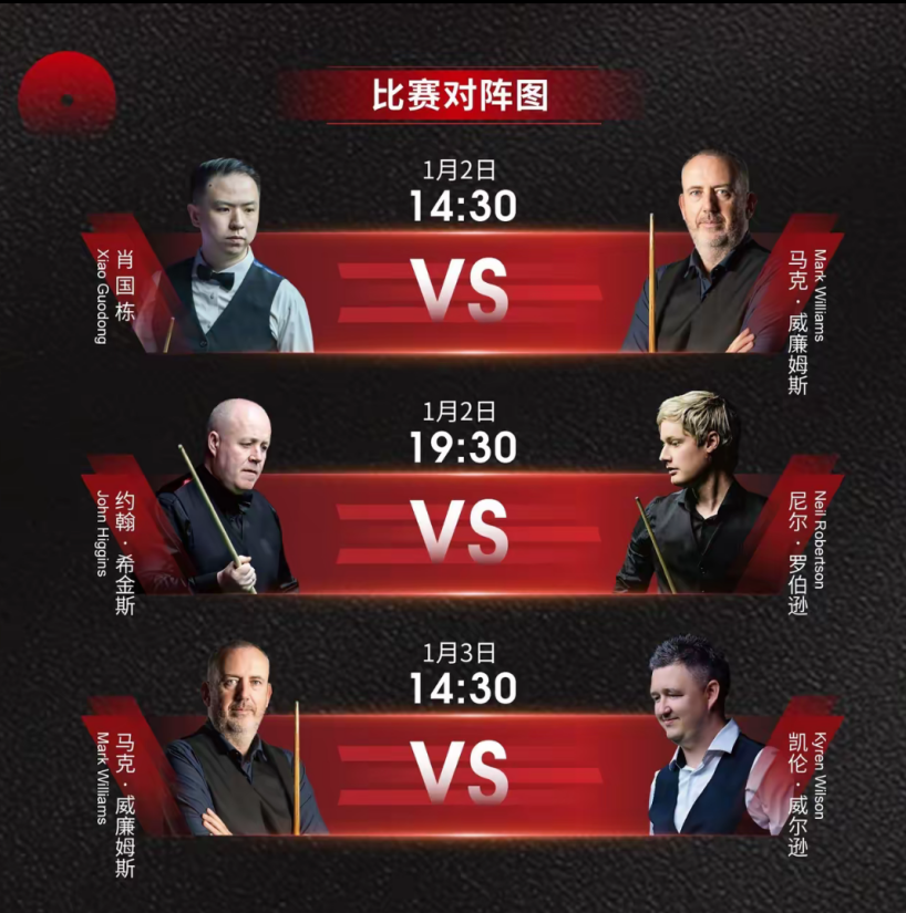 此次赛事,汇聚全球排名前十的顶级选手,堪称斯诺克界的“梦幻阵容”!贾德・特鲁姆普的暴力美学、凯伦・威尔逊的沉稳犀利、尼尔・罗伯逊的左手绝杀、马克・威廉姆斯的传奇手感、约翰・希金斯的宗师级控球,再加上中国名将肖国栋的主场突围——星光熠熠的阵容,每一场都是神仙打架,每一杆都可能创造经典!