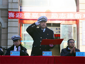 清晨8点,交警李沧大队全体民辅警整齐列队,在庄严肃穆的氛围中举行了升警旗仪式,青岛市李沧区委常委、政法委书记高天宝,交警支队党委委员、副支队长徐希胜参加。伴随着《人民公安向前进》警歌,警旗冉冉升起,全体人员面向警旗肃立敬礼,表达对党和人民的无限忠诚和热爱。重温入警誓词,进一步激发全体民辅警坚定理想信念、铸牢忠诚警魂,增强队伍凝聚力和职业荣誉感。升旗仪式结束后,大队长安明向全体民辅警表达了节日的祝贺和崇高的敬意,同时表示过去一年李沧交警在维护交通秩序、保障道路安全等方面取得的显著成绩,勉励大家要继续发扬优良传统,不忘初心、牢记使命,为人民群众创造更加安全、畅通的交通环境。