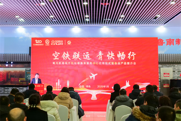 继胶州北站空铁联运城市航站楼正式揭牌运营,2025年1月14日,春运首日,青岛机场城市航站楼换乘服务中心启用暨春运产品推介会在青岛北站举行,标志着青岛机场青岛北站城市航站楼换乘服务中心正式启用,将为旅客提供更加便捷、高效、舒心的出行体验。