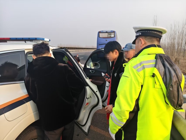 1月21日下午16时许,济青高速交警高密大队民警巡逻时发现应急车道上停着一辆大客车,车辆停放不规范,占用了部分第四车道,后轮处有人正俯身查看车底,疑似车辆故障。