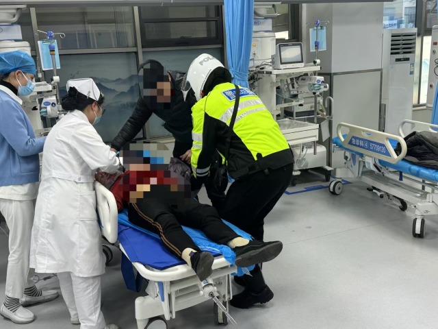 到达医院后,臧文凯立即与家属一起将病人抬进急诊室,待病人顺利就诊后,离开医院返回岗位。