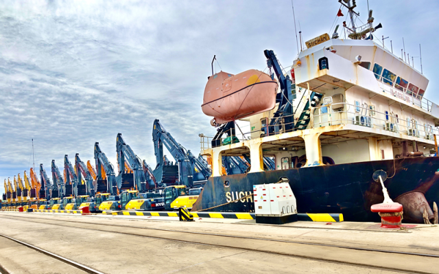 山东港口青岛港设备船舶装船完毕,等侯启航。