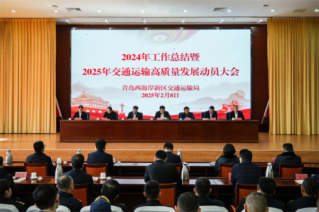 2月8日,青岛西海岸新区交通运输局召开2024年工作总结暨2025年交通运输高质量发展动员大会。会议由局党组成员、公路事业发展中心主任王诚明主持,区政府党组成员、副区长洪金鑫出席并讲话,局党组书记、局长李海波全面总结2024年新区交通运输工作成效,部署2025年高质量发展任务,动员全体交通人凝心聚力再出发。局党组成员、副处级干部,局属各单位、机关各科室全体人员等参加会议。