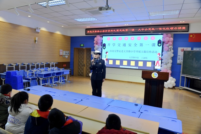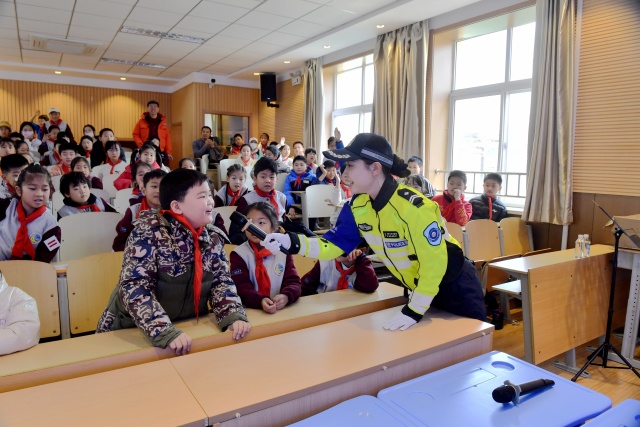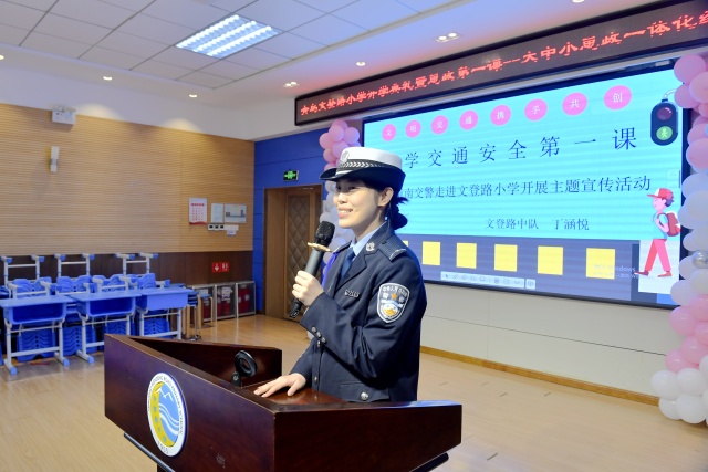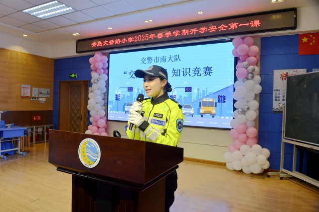 活动现场还设置了交通安全知识竞赛环节,来自市南交警海螺号宣讲团的周佳宜警官现场与同学们进行互动,还为回答对问题的学生们精心准备了交通安全周边盲盒,活动现场气氛热烈,丰富有料的活动内容让学生们全神贯注,入脑入心。