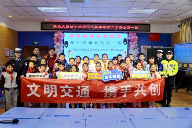 2025年春季新学期已经开启,为全力护航开学季,增强学生的自我保护意识,有效预防涉及学生交通事故的发生,青岛交警组织开展形式多样的交通安全主题宣传活动,共出动警力480余人次,走进中小学、幼儿园开展面对面讲解、交通手势展演、警用摩托演练、互动问答等活动,发放宣传材料1.3万余份,受教育人数12.4万余人次。