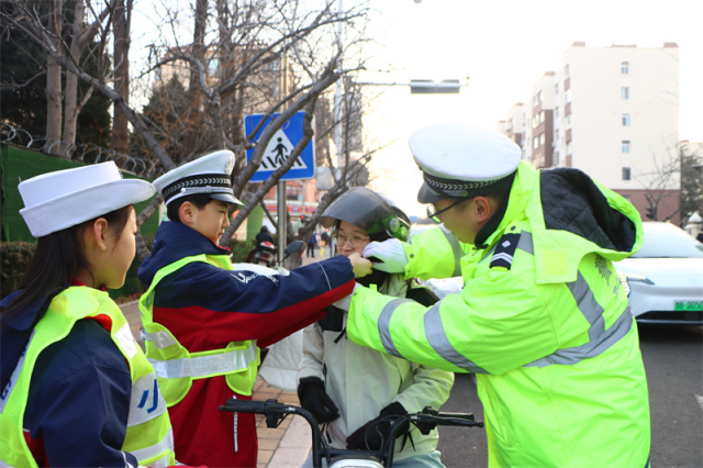 2月14日早晨,在交警叔叔的带领下,城阳区第二实验小学的同学们体验了一场别开生面的交通安全劝导活动。交警叔叔现场为同学们讲解了交警的工作职责、路口执勤和安全劝导注意事项等。随后,“小交警”们在警察叔叔的带领下,对骑乘摩托车、电动车不戴头盔等交通违法行为进行劝导。