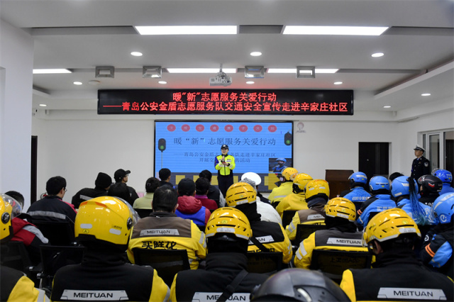 为进一步推进“一老一小一新”专项行动,贯彻落实市委社会工作部暖“新”志愿服务关爱行动项目要求,青岛市公安局金盾志愿服务队在青岛市范围内正式启动了暖“新”志愿服务关爱行动,此次活动对提高新业态配送人员的交通安全意识,预防和减少涉外卖骑手交通事故的发生具有重要意义。2月25日,青岛市公安局金盾志愿服务队联合交警市南大队金盾志愿服务队到珠海路街道辛家庄社区,开展以“争当文明骑手 共创平安青岛”为主题的交通安全集中宣讲活动,切实将遵规、守法、安全的出行理念常驻每名外卖、快递骑手的心中,青岛市公安局金盾志愿服务队、交警支队金盾志愿服务队、交警市南大队金盾志愿服务队、顺丰快递、顺丰同城、美团、饿了么、达达等50余人参加活动。