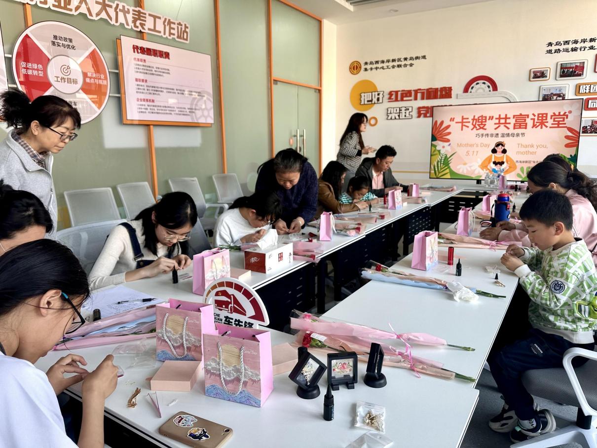 作为道路运输行业的“娘家人”,区道路运输行业党委始终聚焦集卡司机群体需求。今年以来,依托“车先锋”党群服务中心阵地,已开展制作非遗螺钿胸针、推拿等技能培训3场,累计服务卡嫂160余人次。本次活动现场还设置了亲子互动环节,让平日忙于照顾家庭的卡嫂们在创作中舒缓压力,增进家人情感。