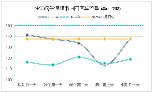 随着假期出行需求不断扩大,预计端午出行人流、车流较往年将有所增长。根据往年出行规律和近期流量变化分析,预计端午期间全市在途车流量日均约576.3万辆,同比增长10.3%,略高于5月日均流量。届时干线公路、交通枢纽、景区周边道路交通流集中。