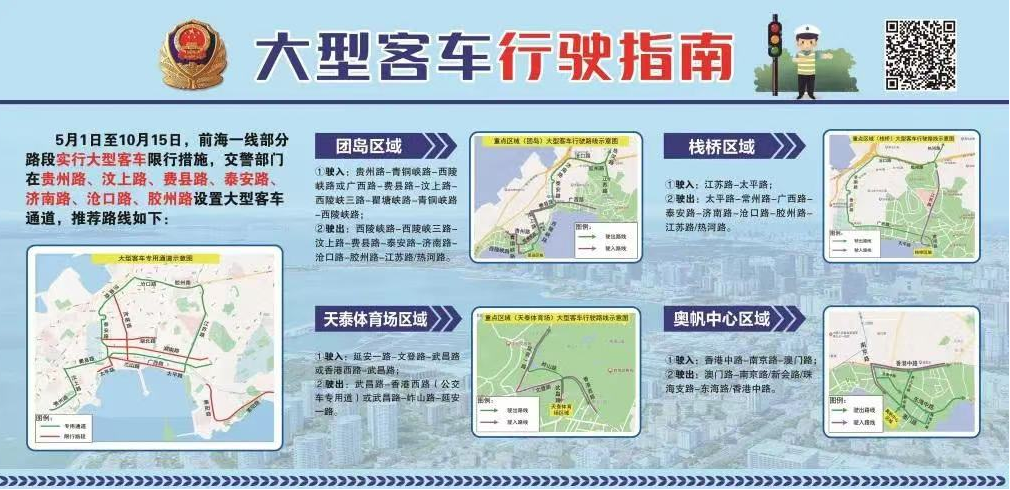 1、旅游大巴限行。自5月1日至10月15日,市区前海一线继续执行大巴限行政策,每日7时至18时,禁止大型客车在以下路段行驶:太平路(单县支路-江苏路段)、莱阳路、东海路(太平角六路-南京路双向全路段、台湾路-南京路东向西方向)、兰山路、河南路、湖南路、湖北路。