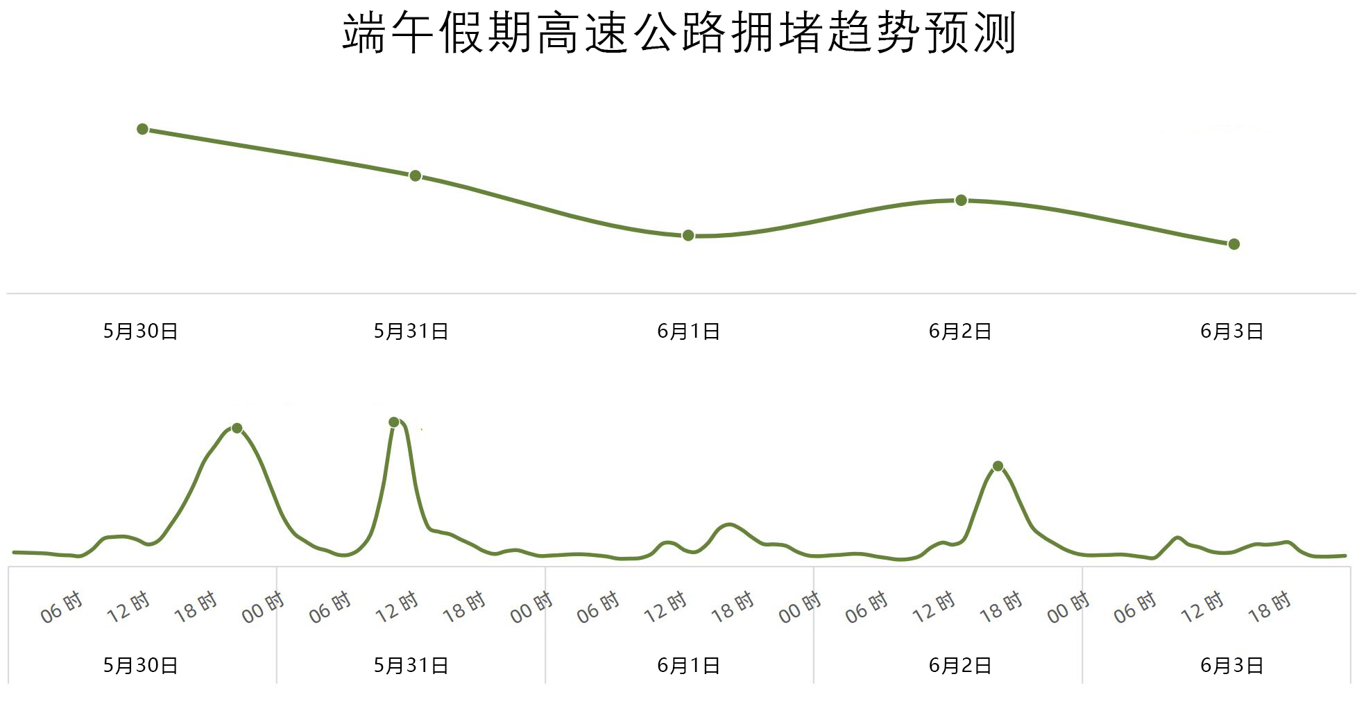 根据往年假期出行规律,端午假期前一天(5月30日)和假期首日(5月31日)都将迎来出程高峰。假期前一天高速拥堵里程占比大概率高于假期第一天,当天14时开始,高速公路交通压力逐渐增大,18时-22时拥堵程度较高,峰值或将出现在20时-21时。假期首日为第二次出程高峰,9时-13时是拥堵高峰时段,峰值或将出现在10时-11时。预计假期最后一天(6月2日)15时-18时为返程拥堵高峰,峰值预计将出现在16时-17时。提醒市民提前合理安排时间,错峰出行。