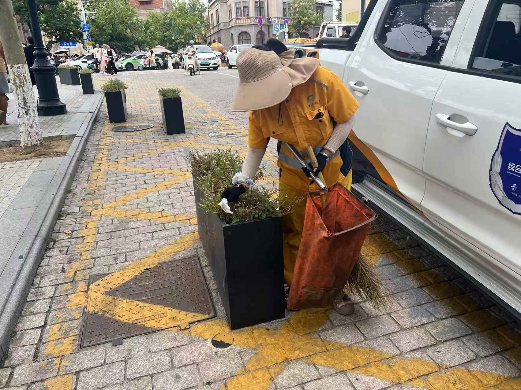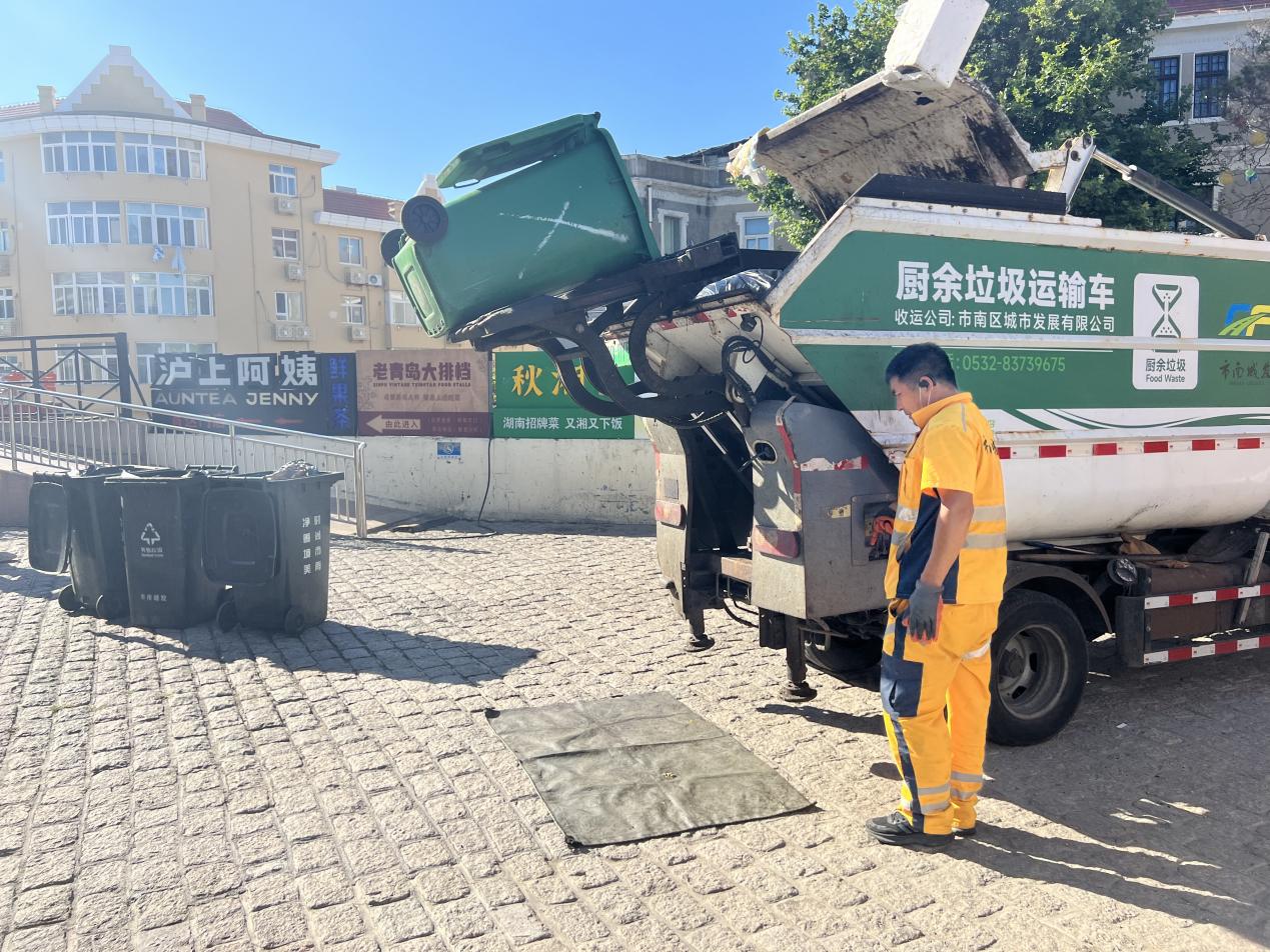 城市的洁净底色由环卫工人用心守护。据市南区城市发展有限公司工作人员介绍,在三江里、大鲍岛、海誓山盟广场等分会场及周边部署固定保洁与巡查人员,重点区域保洁延时至 21 时。面对庞大的人流量,通过跨站抽调机动人员充实力量,垃圾收运频次从每日 4-5 次增至 5-6 次,增设的临时垃圾桶有效减少落地垃圾。创新推出的 “定时定点、上门直收” 清运模式,调配小型电动压缩车等设备直达商户门前,破解了大型车辆清运难题,让老城在热闹中始终保持清爽。