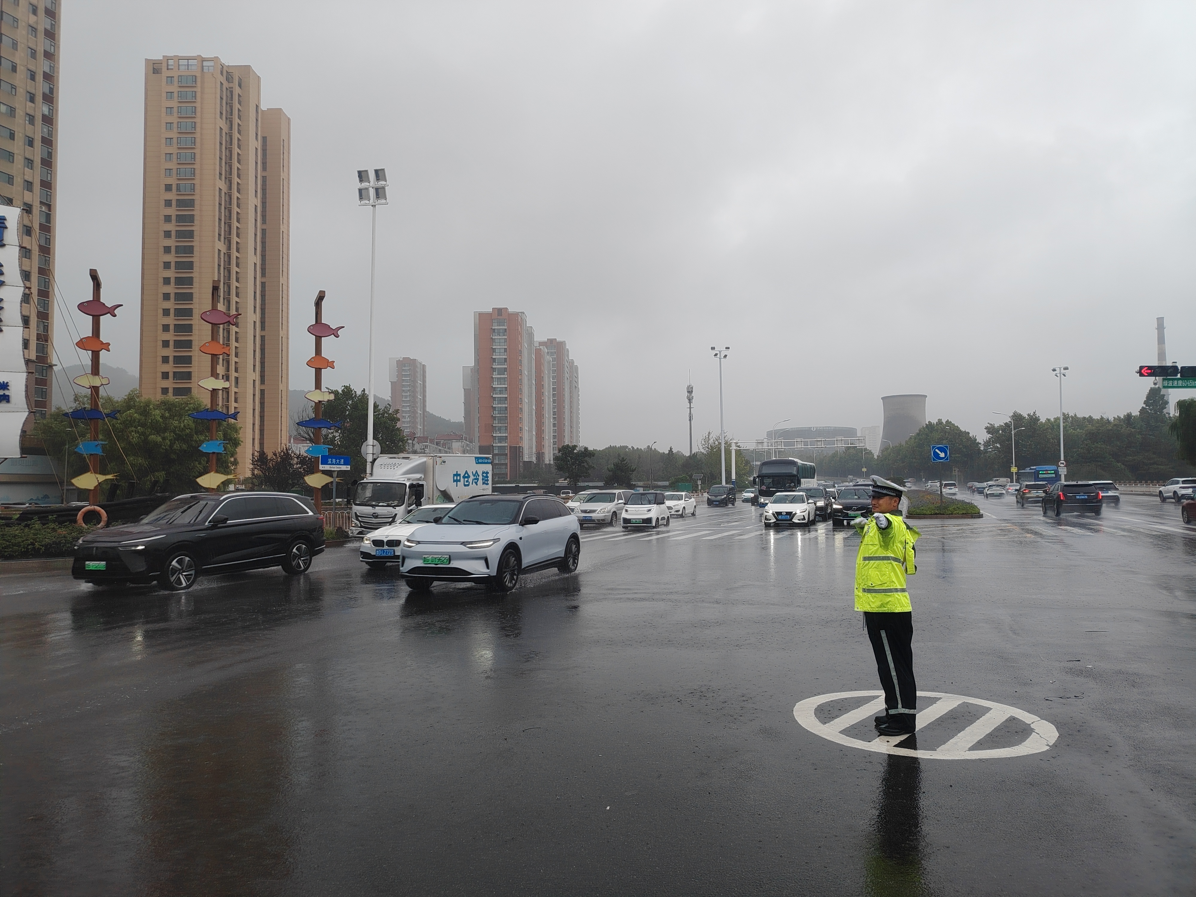 公安交管部门提前部署警力,加强易积水点位、快速路及桥下低洼路段等重点部位的巡逻管控。期间,实时监控全市高速公路、高架路、进出城主干道以及市区主干道通行情况,加强与气象部门的信息沟通协作,快速反应处置各类交通警情,最大限度降低强降雨天气对道路交通的影响。在沿海一线旅游景点、客运场站、商业街区、医院周边等人流车流密集的路口、路段,交通民辅警冒雨坚守路面,及时对过往车辆进行分流和疏导,确保高峰期时段交通运行有序。在高速公路、城市快速路、桥梁、隧道等路段,交警部门加大巡逻管控力度,通过开启警灯和警报器,喊话提醒等方式,提示过往车辆注意安全。同时加大对非机动车、行人管控劝导力度,引导广大交通参与者增强安全防护意识。在易积水路段,采取远端分流,近端管控措施,设置警示标志,提醒过往车辆和行人注意安全,并及时联系相关部门处置。同步提前削减流量,快速疏导车辆。此外,交警部门强化警情快处工作,遇有信号灯故障、交通事故、树木倒伏、群众求助等警情,第一时间反应、第一时间处置,全力确保市民群众的出行安全。