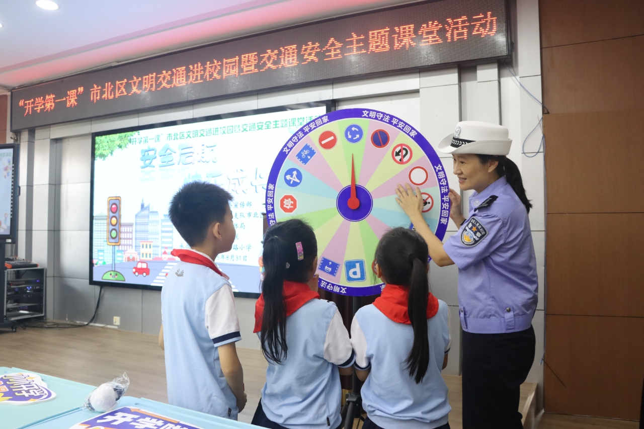 开学首日,公安交管部门利用校会和主题班会时间,开展“开学第一课”交通安全宣讲活动。民辅警针对学校周边交通状况和学生出行特点,以“知危险 会避险”为主题,通过安全宣讲、播放视频、展板展示、互动问答等方式,向同学们普及交通法规,宣讲文明行路、守法骑行、安全乘车等安全常识,引导同学们不断增强自身防护能力,守法规知礼让,安全文明出行。开学后,公安交管部门将联合教育部门和学校持续开展“开学第一课”交通安全宣教活动,针对不同学龄段和学校周边交通特点“因材施教”,全面提升学生交通安全意识。