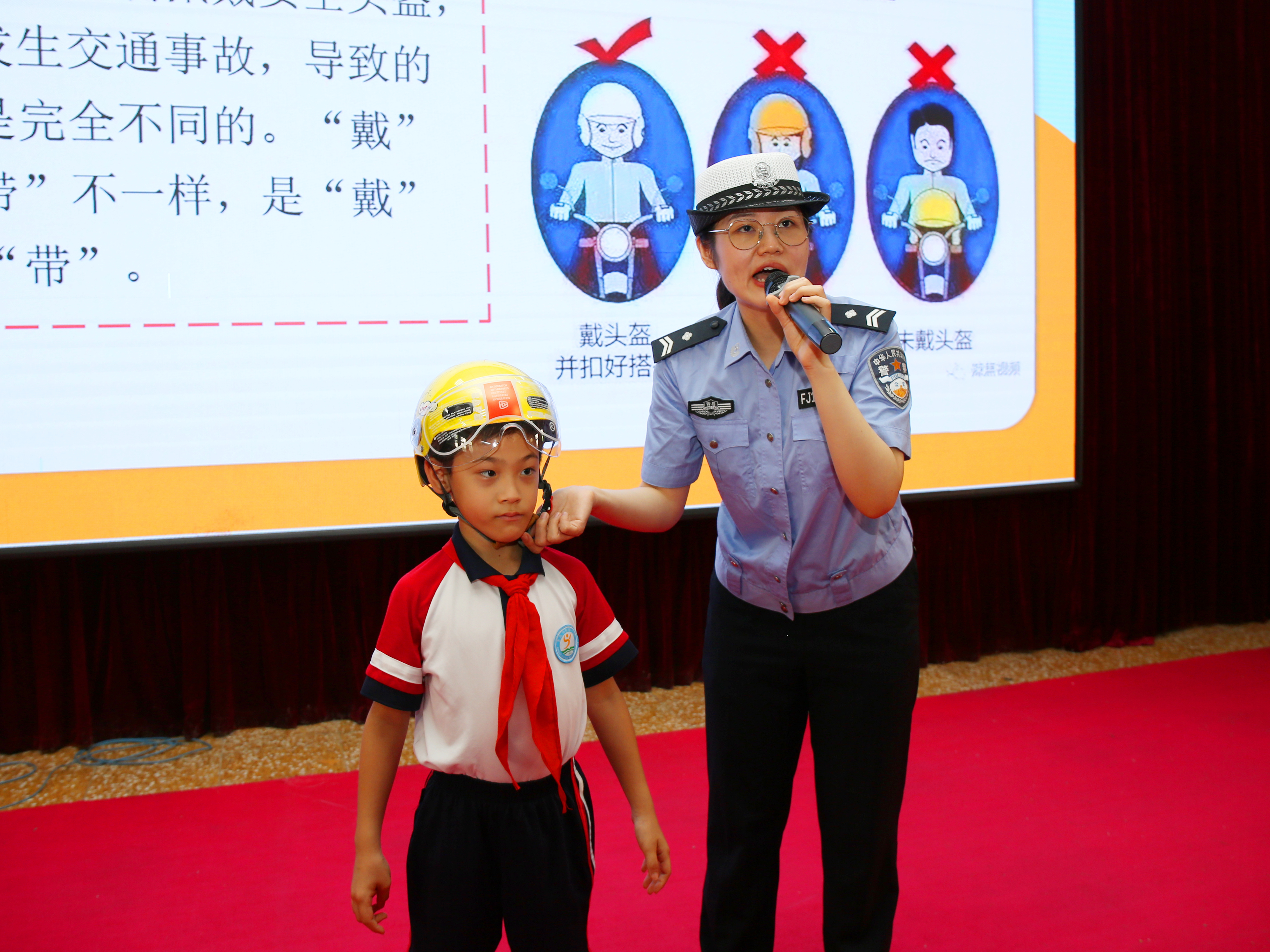 互动环节设置趣味答题竞赛。为提高宣教效果,民警将知识讲授转化为趣味闯关游戏,每完成一个知识点学习即开启一轮答题竞赛,检验孩子们掌握交通知识情况,对积极参与的学生赠送交警小熊纪念品,提高了孩子们参与的积极性和专注性,现场160余名师生互动率达100%,形成“学习-实践-反馈”的完整闭环。