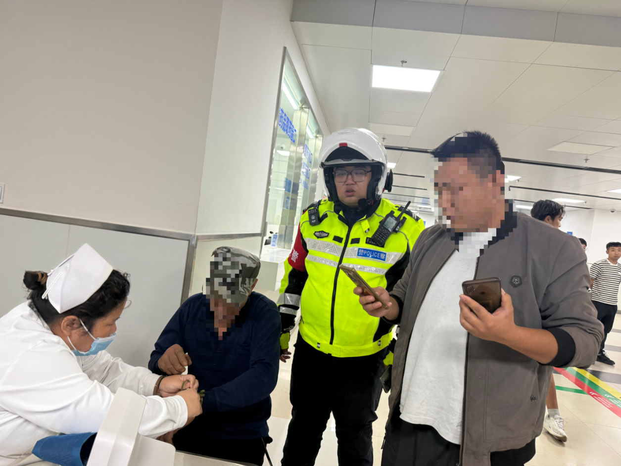 时值国庆长假最后一天,返程车流汇聚,城区主干道车流密集。接到指令后,铁骑队队员管翔、周鹏、赵鑫三人立即驾驶警用摩托车奔赴预定接应点——重庆路高架桥延寿宫路出口。等待期间,队员管翔始终与报警人保持联系,得知运送患者车辆在高速路上遇到突发状况,管翔迅速协调指挥室,帮助引导路线,耐心等待伤者。