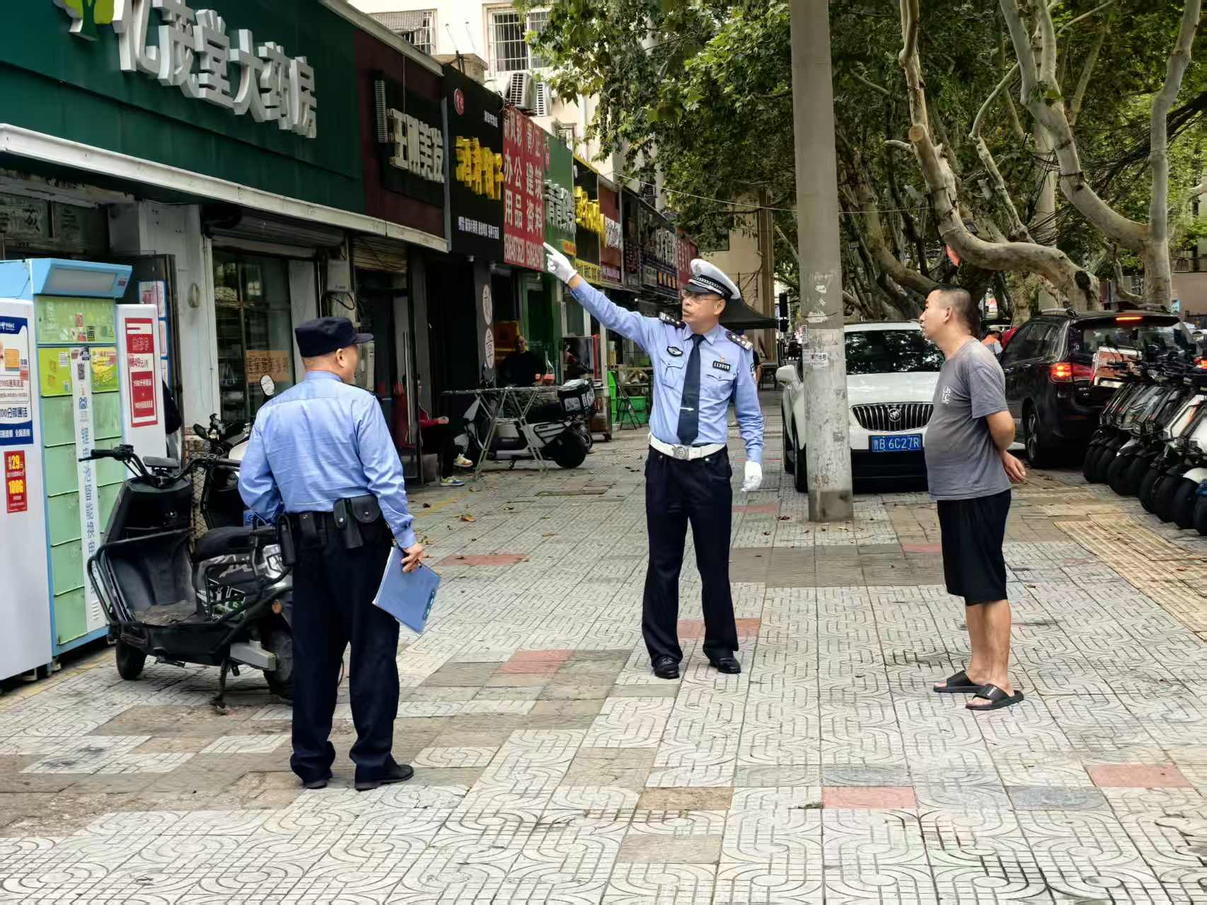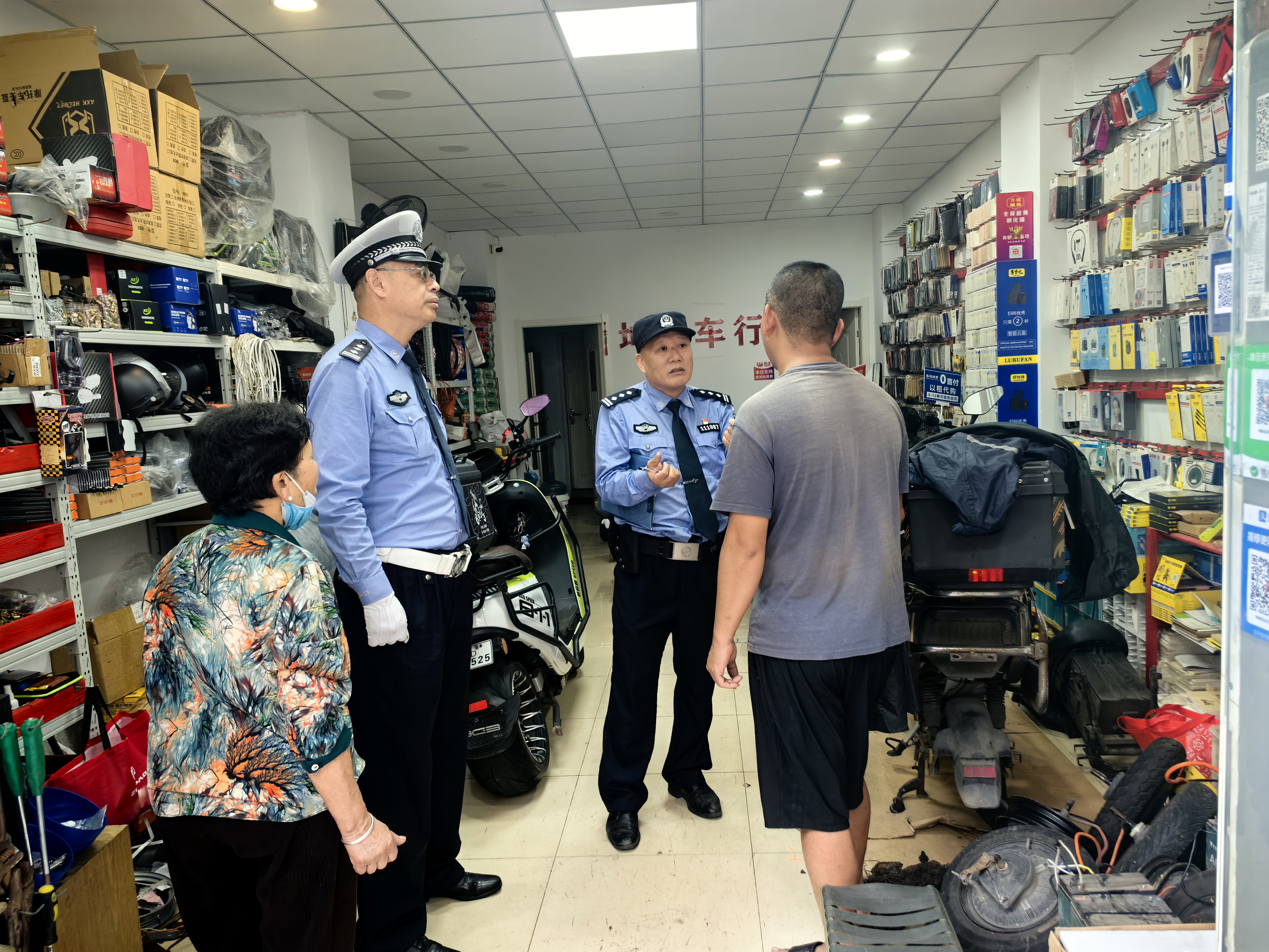 隐患联查,构建全天候防护体系。当夜晚的喧嚣渐渐褪去,“交所融合”的守护仍在延续。交警老牛与派出所民警老黄组成“老黄牛组合”,针对前日排查出的排水井盖松动、商户私拉电线等问题开展“回头看”,推动快速修复。在夏庄路施工路段,他们联合交通运输部门规范占道施工围挡,确保夜间人车通行安全。“以前白天查交通隐患,晚上担心治安隐患,总感觉‘两张皮’。现在信息共享、行动同步,问题发现更早,解决更快,心里踏实多了。”交警老牛道出了“融合”带来的深刻变化。针对商圈周边电动自行车使用频率较高的问题,白天,“老黄牛组合”主动深入到李村夜市周边电动车商铺,检查车辆标准参数,宣传挂牌政策,确保销售的电动自行车符合国家标准并挂牌上路。通过这种“白+黑”无缝衔接的隐患排查模式,为夜市筑起了全天候、无死角的安全屏障。