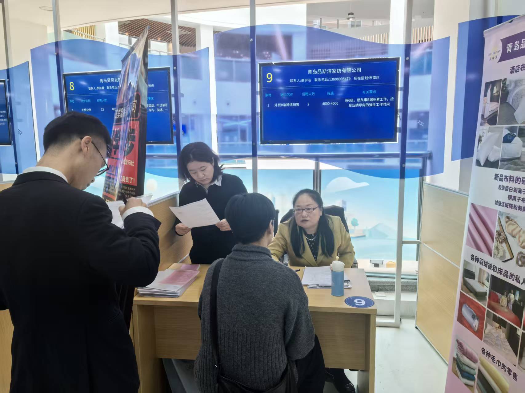 供需精准对接,人才链与产业链深度融合。双选会现场,企业精准揽才、人才高效择业。企业提供的岗位紧密贴合外贸及跨境电商行业数字化、国际化发展趋势,涵盖数字营销、跨境物流、品牌运营等领域。青岛科技大学、青岛农业大学、青岛大学、青岛滨海学院、青岛工程职业学院等高校外贸相关专业应届毕业生及社会求职者近300人参与。通过“岗位推介+现场面试”模式,近半数求职者与企业达成初步就业意向。