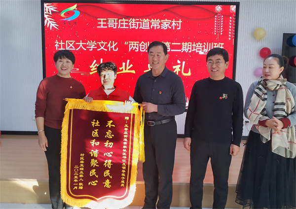 常新新认为文化“两创”活动切实提升了村民们的精神文明面貌,充实了大家的文化生活,并且主动将村里关于文化“两创”的宣传转发给了朋友。为了表达对村集体组织文化“两创”活动的感谢,她委托母亲在培训班结业仪式上送锦旗,上书“社区和谐聚民心,不忘初心得民意”。