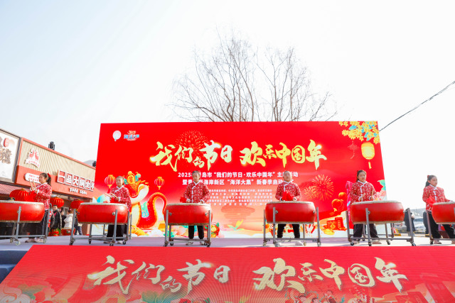 擂鼓声声震天地,腾起幸福中国年。2025年青岛市“我们的节日•欢乐中国年”主题活动在泊里大鼓强烈的鼓点中拉开序幕。伴随配乐《中国龙》,泊里传统大鼓昂扬澎湃,敲出泊里人享受当下、奋斗美好的精气神儿。歌舞《欢乐中国年》用熟悉的旋律,赞美幸福生活,传递新年祝福。《醒狮贺岁 泊心归里》《乐游西海岸》《巧手编出幸福来》等当地文艺志愿者精心编排的节目,引得观众阵阵喝彩声,将演出推向高潮。