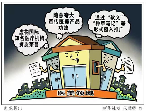发布医疗美容广告不得包含下列情形:(一)违背社会良好风尚,制造“容貌焦虑”,将容貌不佳与“低能”“懒惰”“贫穷”等负面评价因素做不当关联,或者将容貌出众与“高素质”“勤奋”“成功”等积极评价因素做不当关联。(二)违反药品、医疗器械、广告等法律法规规定,对未经药品管理部门审批或者备案的药品、医疗器械作广告。(三)宣传未经卫生健康行政部门审批、备案的诊疗科目和服务项目。(四)宣传诊疗效果或者对诊疗的安全性、功效做保证性承诺。(五)利用行业协会以及其他社会社团或组织的名义、形象作证明,使用患者名义或者形象进行诊疗前后效果对比或者作证明。(六)利用广告代言人为医疗美容做推荐、证明。医疗美容广告中出现的所谓“推荐官”“体验官”等,以自己名义或者形象为医疗美容做推荐证明的,应当被认定为广告代言人。(七)以介绍健康、养生知识、人物专访、新闻报道等形式变相发布医疗美容广告。(八)对食品、保健食品、消毒产品、化妆品宣传与医疗美容相关的疾病治疗功能。(九)对医疗美容服务及相关药品、医疗器械的功效等作虚假或者误导宣传表述。(十)禁止向未成年人发送任何形式的医疗美容广告。(十一)生活美容机构等非医疗机构,不得发布医疗美容广告宣传。生活美容的任何广告宣传内容不得涉及疾病治疗功能,并不得使用医疗用语或易使推销的商品与药品、医疗器械相混淆的用语。(十二)法律、行政法规规定不得含有的其他内容。