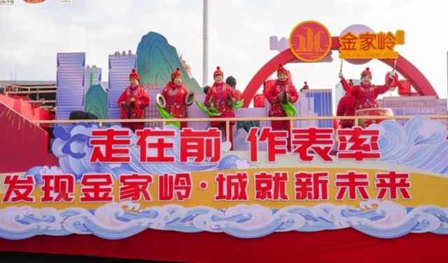 花车巡游中,金家岭街道的花车装饰时尚,车身上赫然写着“走在前,作表率”字样,不仅引领着巡游队伍,更体现了金家岭街道的奋斗目标。与此同时,花车上的显示屏播放着金家岭宣传片,为花车巡游增添了时尚气息。显示屏循环展示着金家岭街道的风光美景、历史文化、经济社会发展成就等内容,让观众在欣赏花车的同时,更加直观地了解金家岭街道的独特魅力和发展潜力。