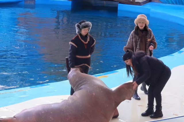 在极地海洋公园的蔚蓝海平线剧场,一场别开生面的海狮海象秀吸引了大家目光。在充满欢乐的海象套圈环节,幸运女神“黑猫的黑”邀请上台,与憨态可掬的海象展开一场趣味横生的互动对决——吹气球大赛。海象以强大的肺活量,毫无悬念地赢得了这场友好竞赛。“黑猫的黑”表示,这是她第一次与海象近距离接触,没想到如此聪明可爱,互动非常有趣,印象深刻,表示会将这次难忘的经历分享给大家,让更多人了解海洋生物的奇妙之处。《海狮传奇-帕瓦》这场五星级的演艺盛宴,已成为青岛极地的亮丽名片。
