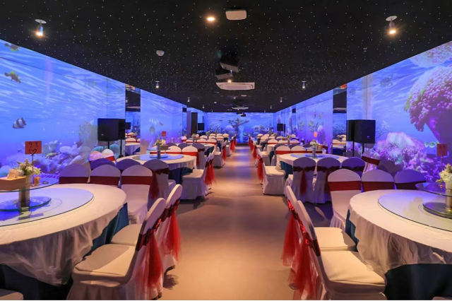 来到长湾山庄,不仅品尝到特色美食,还体验了5D光影宴会厅,大家被数字技术与艺术设计融合打造的虚实交融的沉浸式空间深深震撼。站在六楼阳台,可以一览仰口海岸线绝美风景。