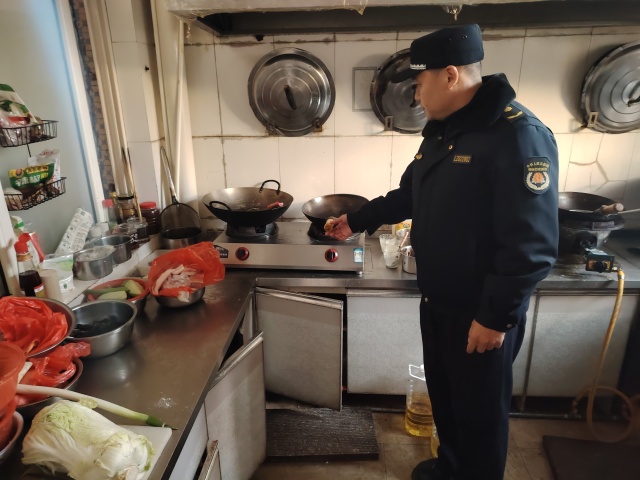 峰山综合行政执法中队采取网格化排查模式,对沿街餐饮店燃气设备、液化气站储运环节开展规范执法检查,重点对燃气泄漏报警装置安装、软管阀门老化、气瓶合规存储等进行检查。对检查发现的隐患问题现场指导整改,提升商户安全用气意识。
