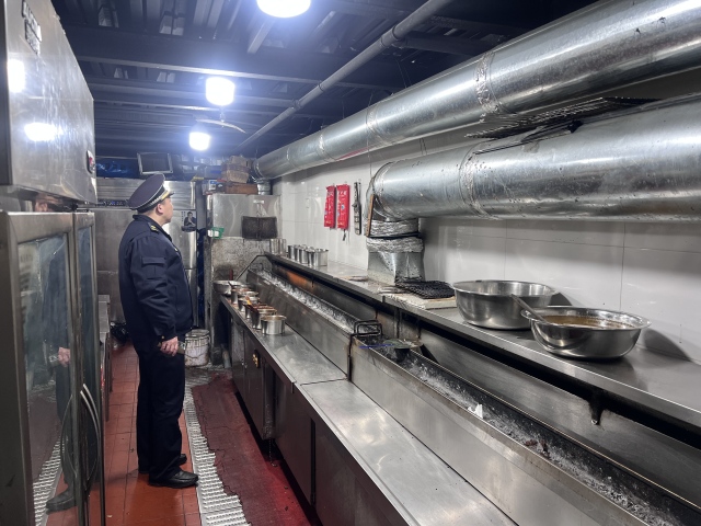 沙子口综合行政执法中队对崂山路沿线及九水东路沿线各类餐饮企业、小吃店等比较集中的区域进行检查,重点检查油烟净化设备的使用和维护情况,查看设备是否正常运转,是否定期清洗和保养,确保油烟达标排放。检查过程中,执法人员采用检查与宣传教育相结合的方式,向餐饮企业负责人普及燃气安全和油烟治理的相关知识,强调安全环保的重要性,要求各经营商户定期开展自查自纠,及时消除隐患。
