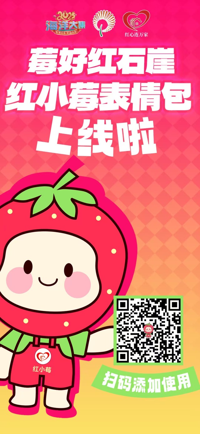 一直以来,“红石崖草莓”凭借鲜美红嫩、口感甜沁、香气四溢、品质极佳,销售火热、走俏市场。为进一步提升草莓品牌影响力,提高产业知名度,激发品牌效应,活动现场红石崖街道正式发布了草莓IP形象“红小莓”及16款动态表情包,旨在通过打造具有地域特色、亲和力强、传播力广的卡通形象,吸引更多人了解红石崖雷家店子草莓。未来,“红小莓”这一IP形象还将作为城市文化符号,融入红石崖文旅全场景,让广大市民游客关注红石崖、走进红石崖、爱上红石崖。