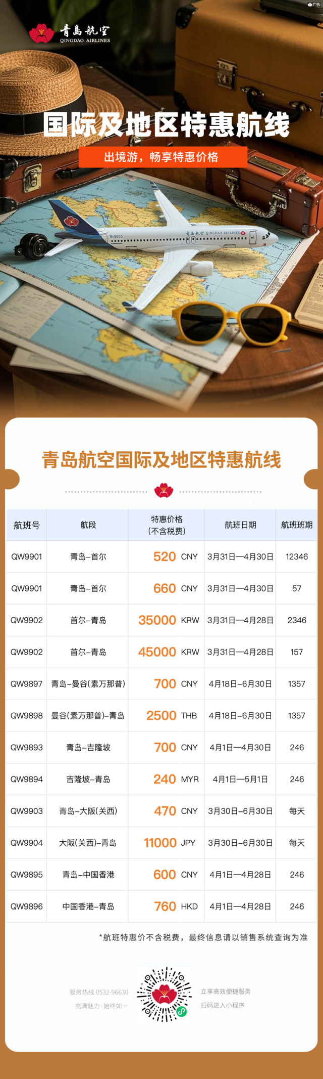 这个春天,让青岛航空带你解锁“说走就走”的旅行!无论想去曼谷感受泰式风情,还是打卡国内网红城市,青岛航空承包你的诗与远方!