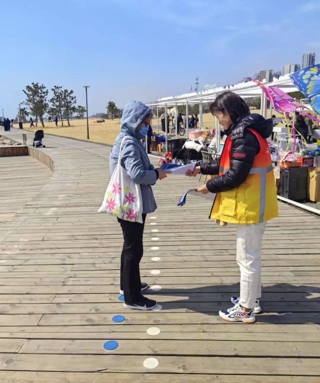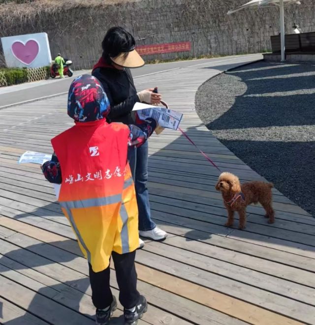活动现场,王家麦岛社区工作人员带领小志愿者们,重点向养犬人发放了《文明养犬倡议书》,宣讲牵绳遛狗、处理排泄物等文明养犬规范,并对“遛狗不牵绳”等不文明行为进行耐心劝阻。同时,小志愿者们还向过往行人、游客普及“礼让斑马线 文明你我他”交通理念,宣传文明旅游行为规范。