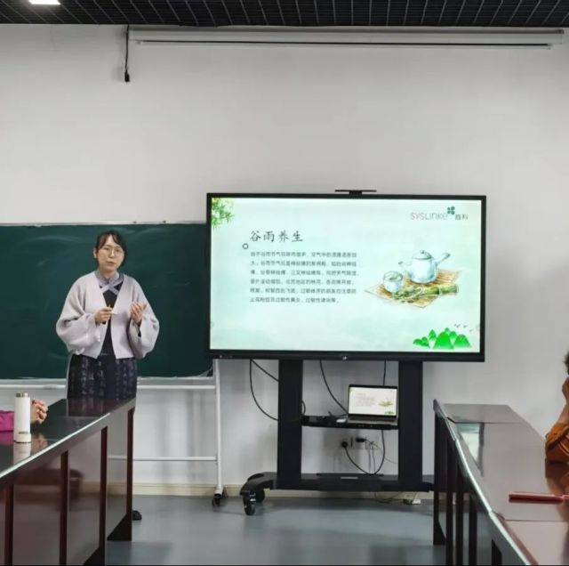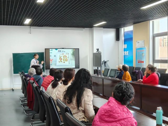 仪式活动现场,全体学员起立合唱红歌《映山红》,邻里情谊得到了进一步升华。随后,老师以谷雨节气为核心,从养生知识与文化习俗两个维度展开讲解。一方面,结合春季气候特点,传授了谷雨时节的饮食调养、起居作息等实用养生技巧;另一方面,通过讲述“祭仓颉”“赏牡丹”等传统习俗,以及“雨生百谷”的节气内涵,引导学员感受中华农耕文明中顺应天时、与自然和谐共生的智慧。课程内容将传统节气文化与现代生活实践相结合,既丰富了学员的文化认知,又提供了可操作的健康生活指南。最后,老师带领学员制作竹编画福字。