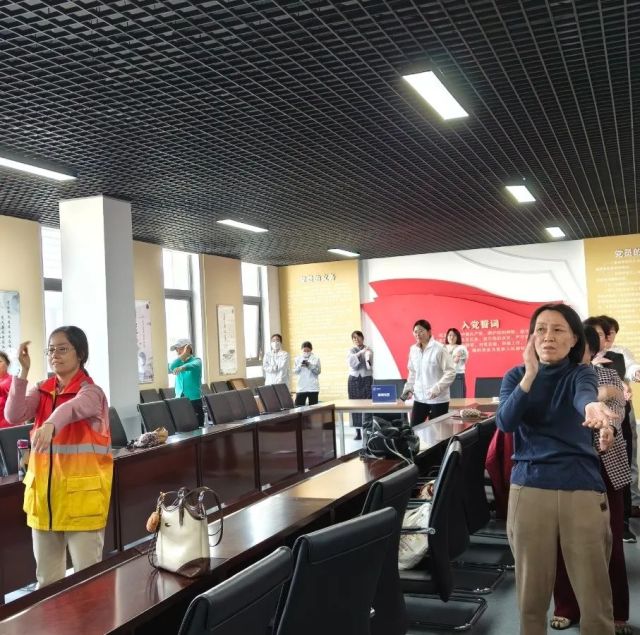 在本次文化“两创”社区书院活动中,康城社区以“健康”为主题开展多彩活动。每日上课前,社区工作人员会带领大家做崂山道教玄真养心操和拍打养正操,工作人员示范动作,耐心讲解要领与功效,助力居民强身健体。