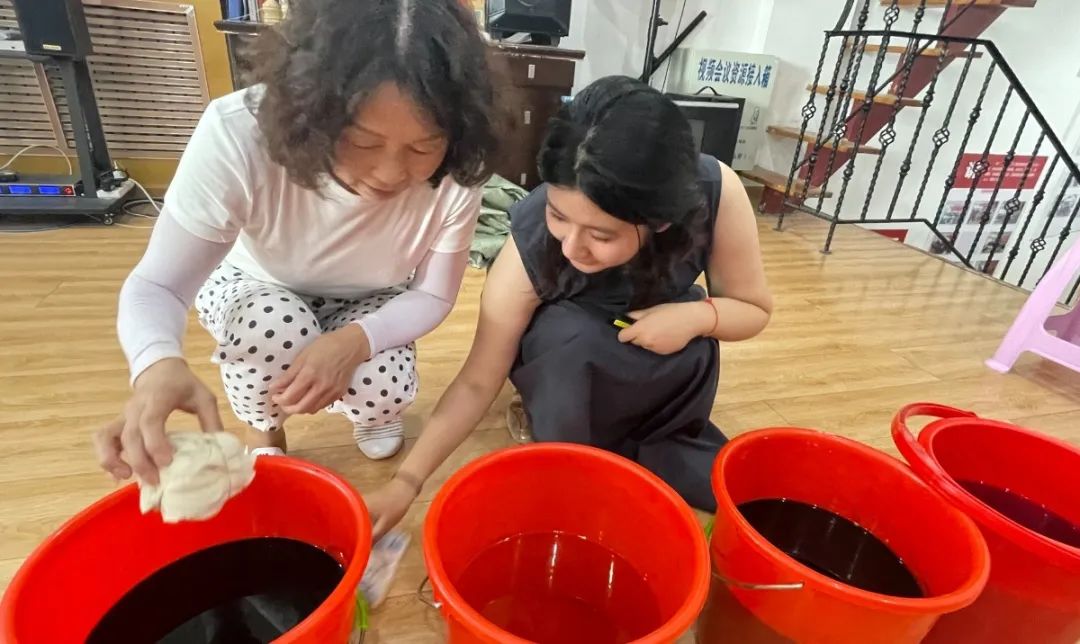 凯都社区与山东头社区则将非遗文化搬进社区,开展扎染与木梳制作文化“两创”活动。在凯都社区扎染活动现场,居民们用皮筋、木夹等工具在布料上勾勒图案,浸染后展开一幅幅蓝白交织的艺术品。山东头社区的木梳制作现场同样热闹,大家互相学习、互相交流,一把把木梳既是实用工具,也成为邻里协作的见证。