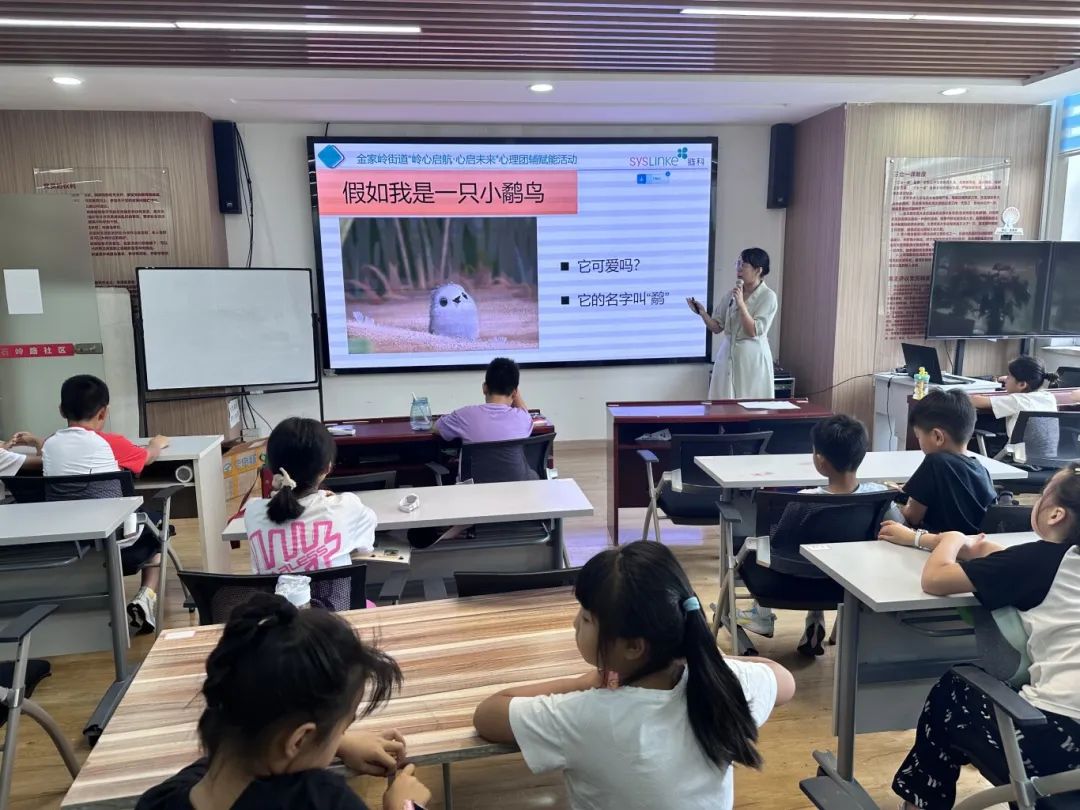 参加社区活动的孩子们常因环境变化产生紧张情绪。"小鹬鸟成长记"团辅活动通过动画《鹬》展开,老师引导孩子们观看鹬宝宝克服恐惧、独立觅食的故事。在分享环节,孩子们畅谈初到暑假班的心情,老师特别关注适应困难的孩子,给予温暖鼓励。通过角色共情,孩子们体会到勇敢面对挑战的成长意义,在心中播下自信的种子。