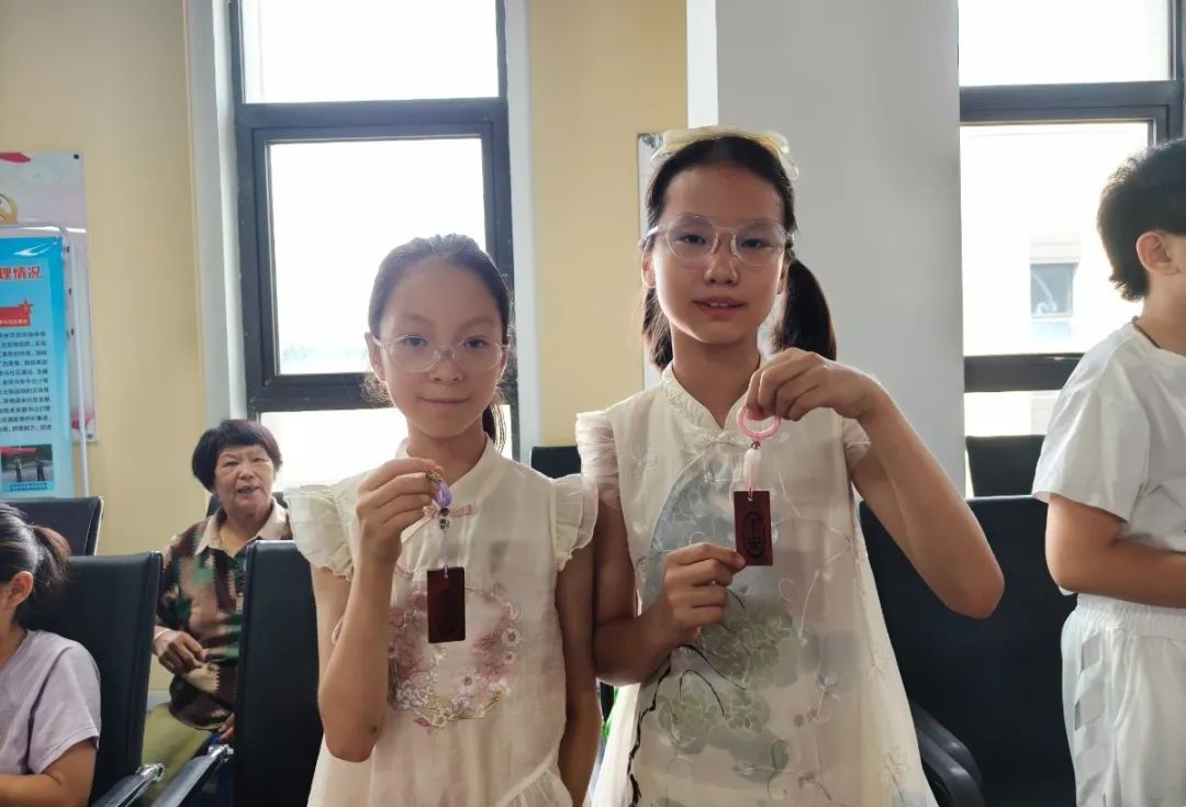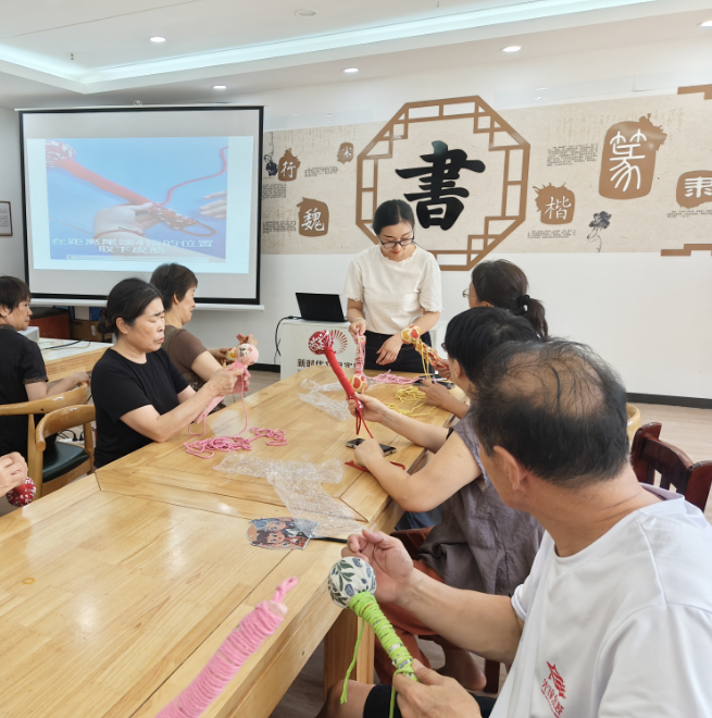 与此同时,活动室内另一场温馨的手工课正在进行。长者们跟随老师的指导,精心制作艾草养生捶,在穿针引线间学习中医养生智慧。这种将传统文化与现代健康理念相结合的方式,不仅让老年人掌握了实用技能,更实现了文化知识的活态传承。活动期间,社区还推出了非遗小课堂、国学讲座等多种课程,让传统文化以更生动的形式浸润孩子们的暑期生活。