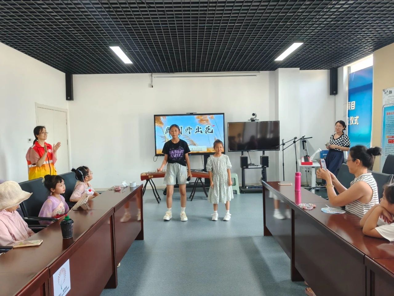 结业汇演更是精彩纷呈:古筝曲《声声慢》余音绕梁,曼妙舞姿尽显古典韵味;《女儿情》的纯净歌声带领观众穿越时空;儿童双合唱将现场气氛推向高潮。这些节目不仅展现了孩子们的艺术才华,更彰显了文化“两创”社区书院作为文化传承平台的重要价值。