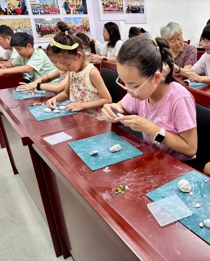 此次暑假班的课程可谓精彩纷呈,除了围棋课,还有朗诵、阅读、粘土泥塑、流体画等。围棋课堂着重锻炼孩子们的逻辑思维与专注力;朗诵活动围绕“经典诗词”“红色故事”展开,老师悉心指导发音与情感表达,助力孩子提升语言表达能力;阅读分享环节鼓励孩子们自主阅读各类书籍,并在交流中学会倾听与表达,养成良好的阅读习惯;社区文化“两创”之“金”彩课堂更是独具匠心,黏土泥塑让孩子们在揉、捏、塑形间感受传统手工艺的魅力,流体画则通过色彩的自由流淌,激发孩子们的无限想象力。