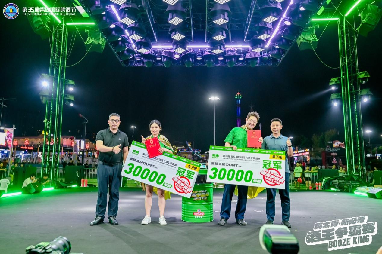 8月15日晚,第35届青岛国际啤酒节“英太青·新必奇”酒王争霸赛在青岛西海岸新区金沙滩啤酒城圆满收官。24位来自全国各地的参赛选手经过3个小时的鏖战,任光超、肖肖成功卫冕,分别获得男子组、女子组冠军,任光超蝉联15届酒王争霸赛冠军。男子组亚军、季军由胡国强和薛佳浩摘得,女子组亚军、季军由张哲庆(江津三妹)和郝茜摘得。