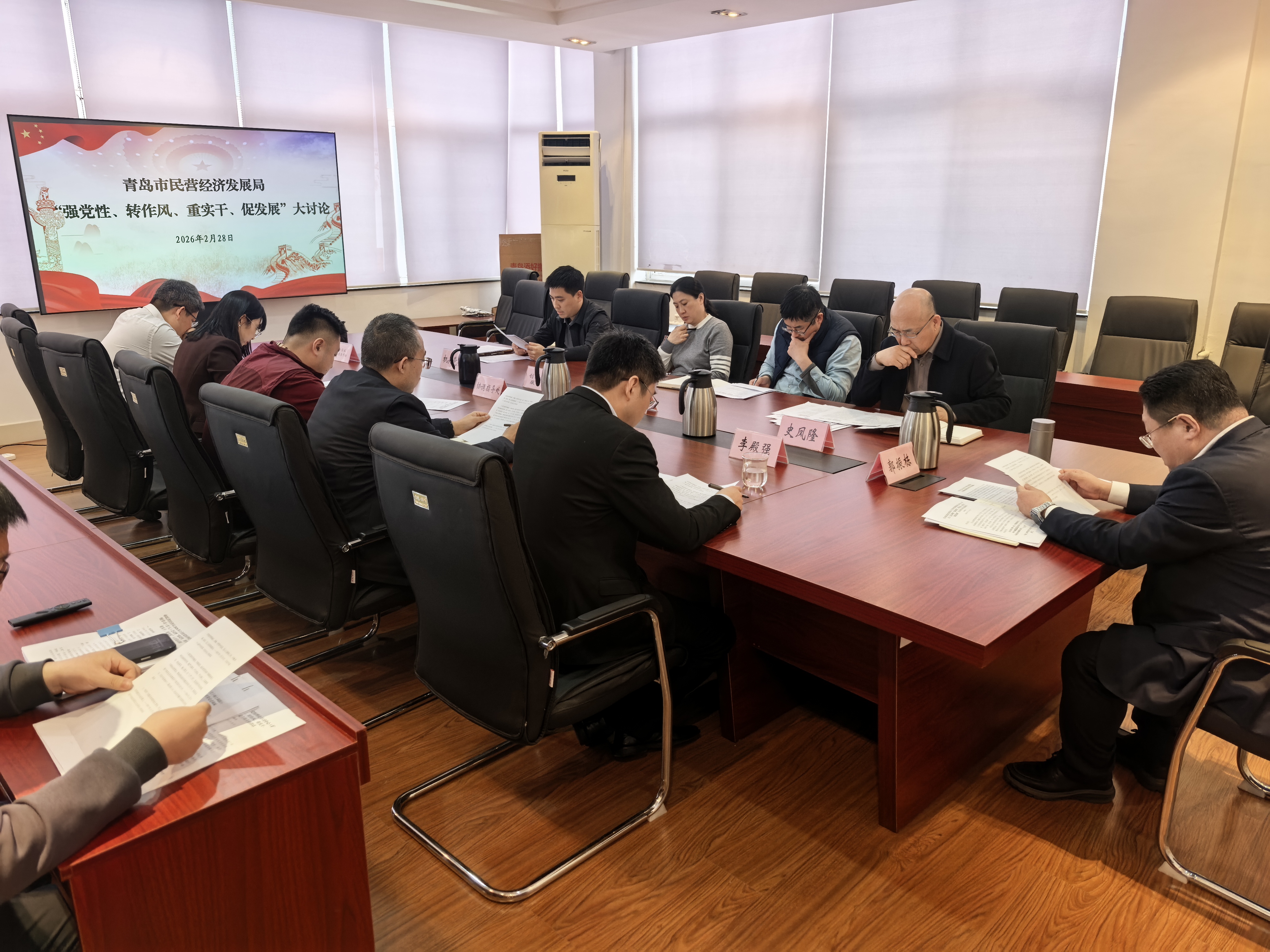 会议指出,认真落实市委“干部作风建设年”活动要求、深入开展“强党性、转作风、重实干、促发展”大讨论、以扎实作风推动全市民营经济和中小企业高质量发展,是实现民营经济领域“十五五”规划目标任务、推进中国式现代化青岛民营新实践的必然要求,是抓好我局巡视反馈问题整改、持之以恒推进全面从严治党的重要举措。