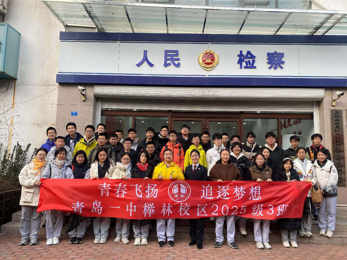 近日,青岛一中榉林校区高一三班联合青岛市微尘公益基金会、青岛红十字凝心基金、青岛市市北区人民检察院,共同组织全体同学走进青岛市市北区检察院未成年人法治教育基地,开展主题法治社会实践活动,将课堂法治理论与校外实践探索深度融合,在沉浸式体验中感悟法治力量,也彰显了学校重视社会实践、培养学生全面发展的育人初心。
