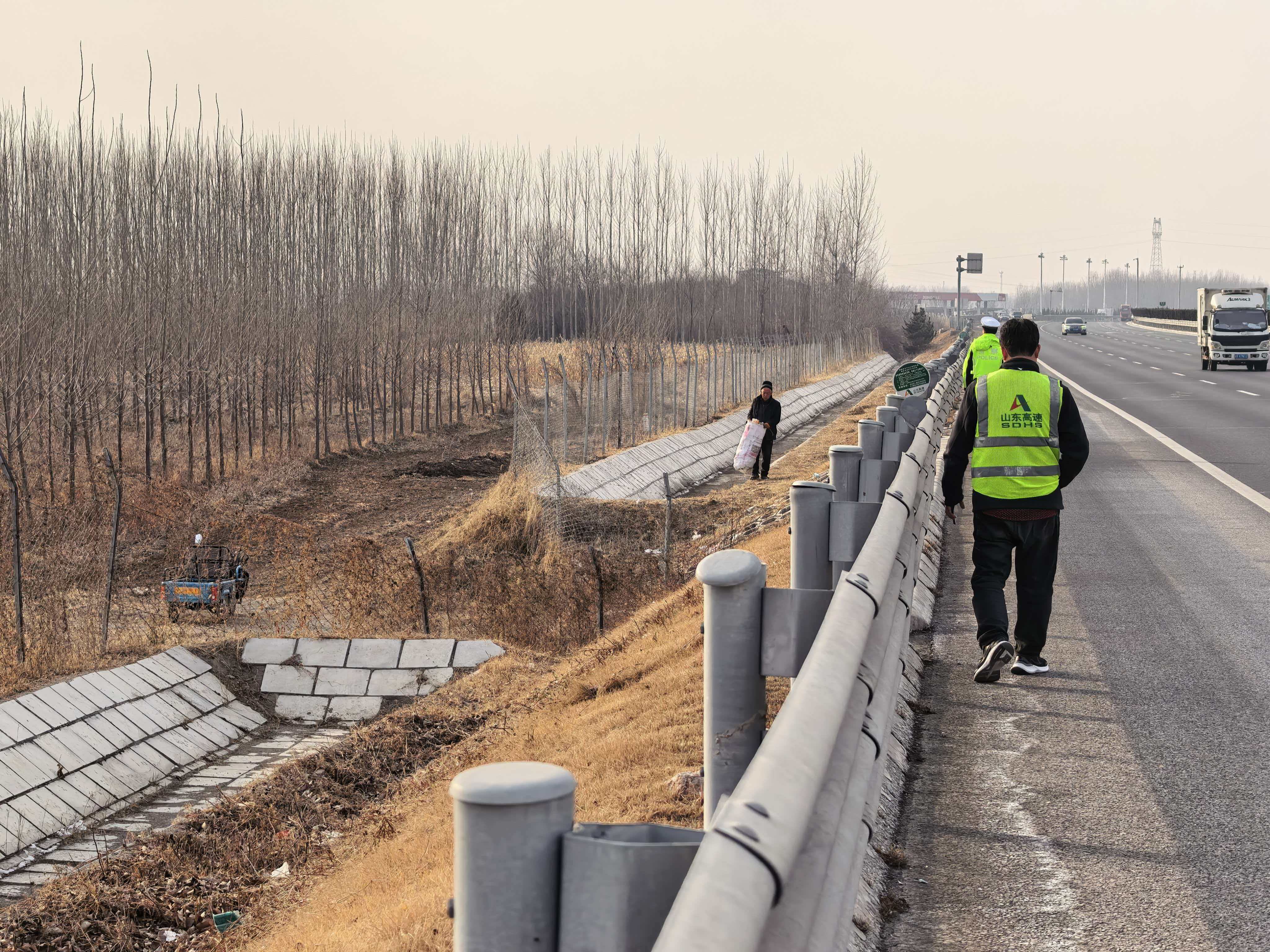 1月27日下午,山东省公安厅交管局直属高速一支队高密大队民警在G20青银高速高密段开展日常路面巡逻与隐患排查过程中,敏锐地发现右侧护坡内有一名老人。老人手持编织袋,正在护坡上捡拾物品。该路段车流密集、车速较快,且护坡陡峭,老人身处其间存在较大安全隐患。